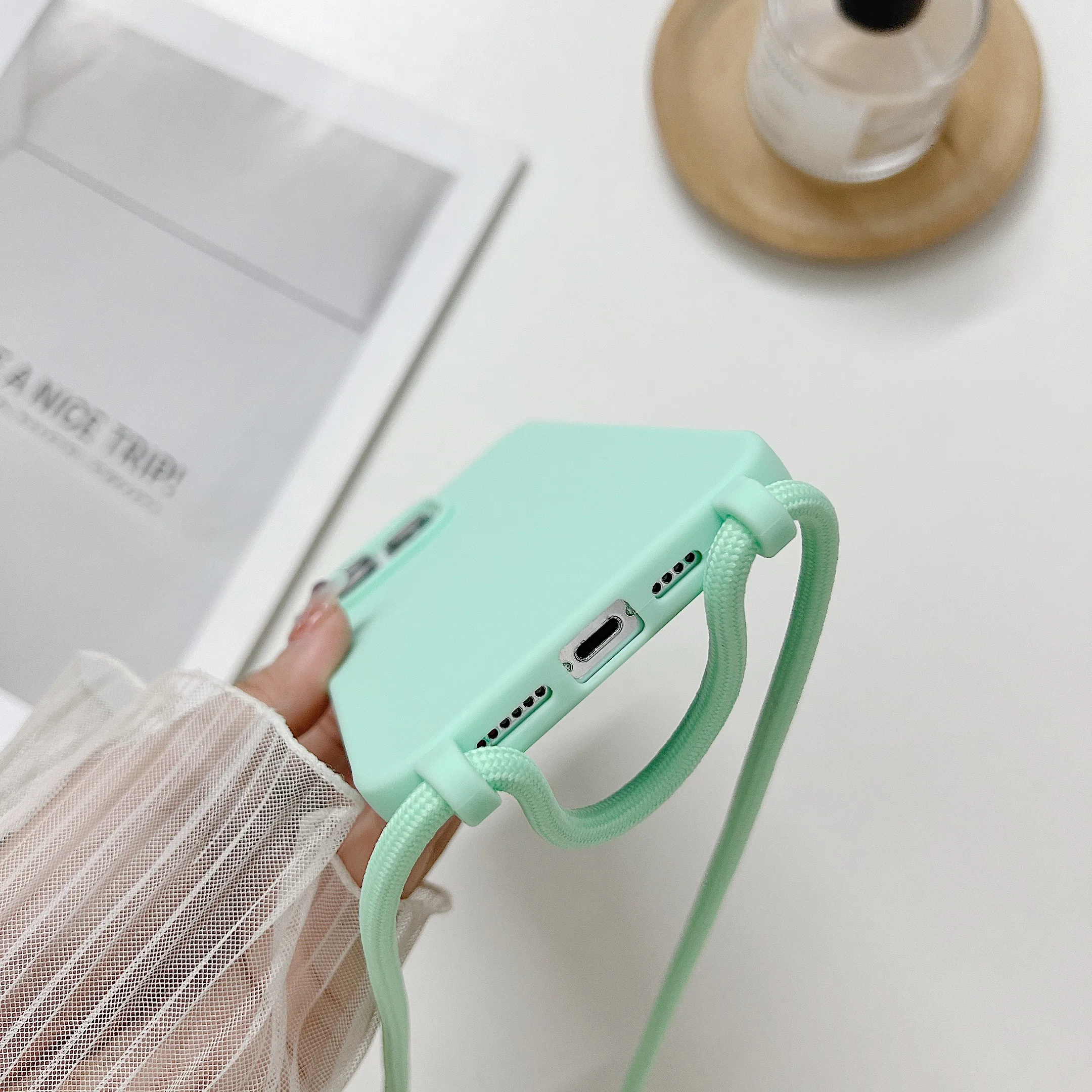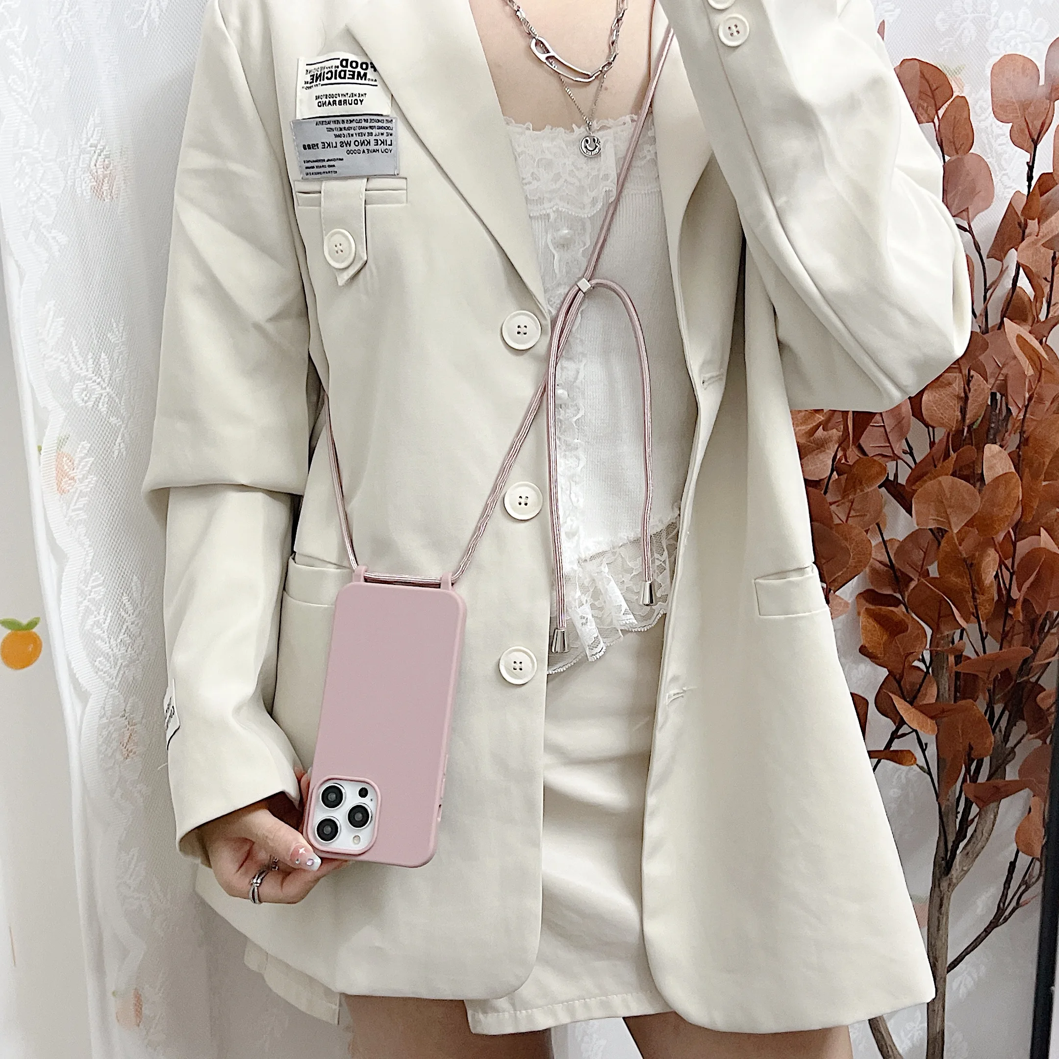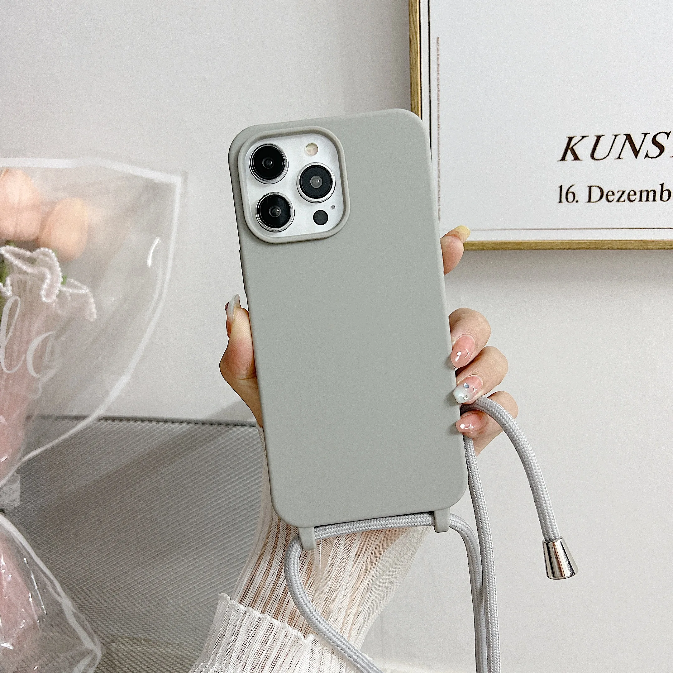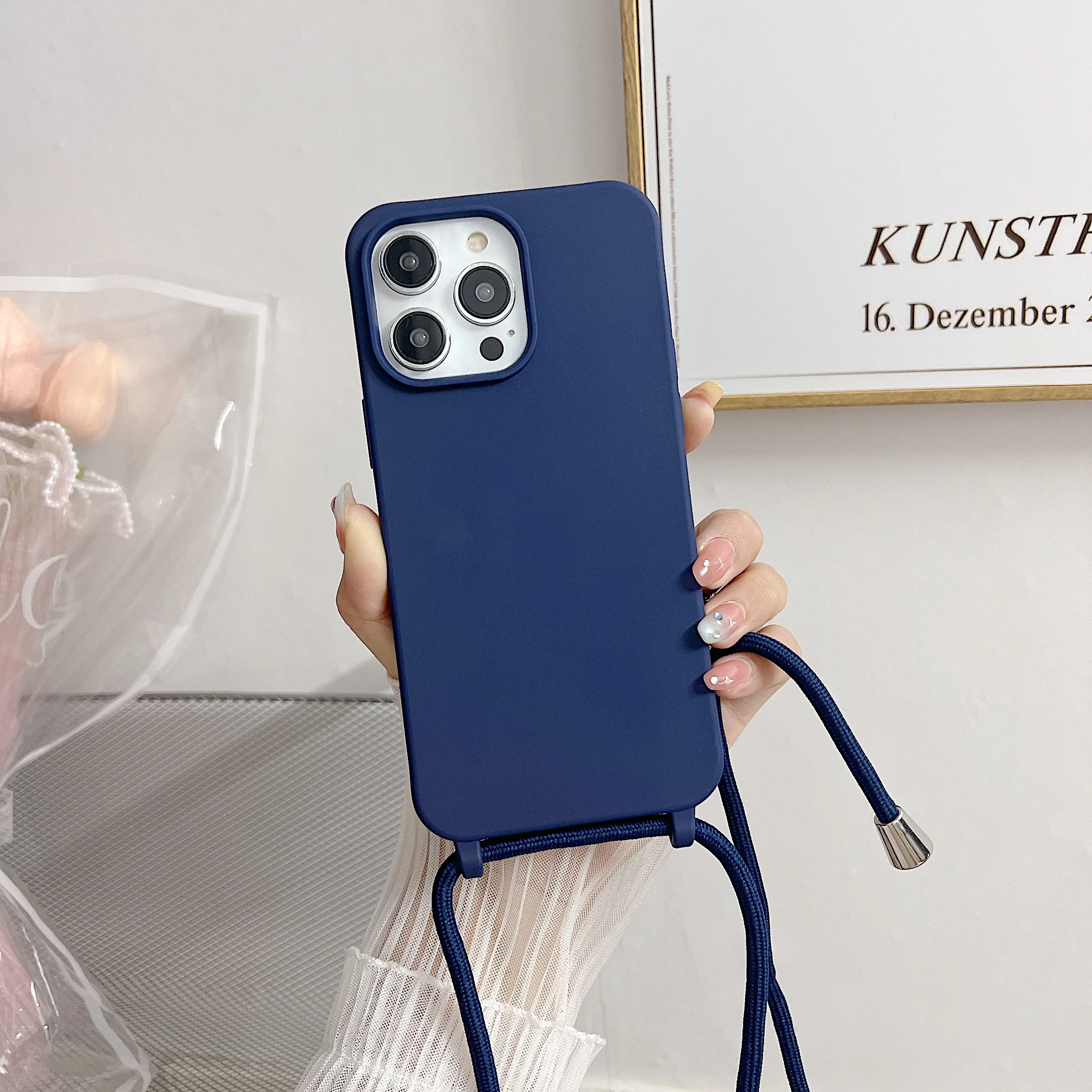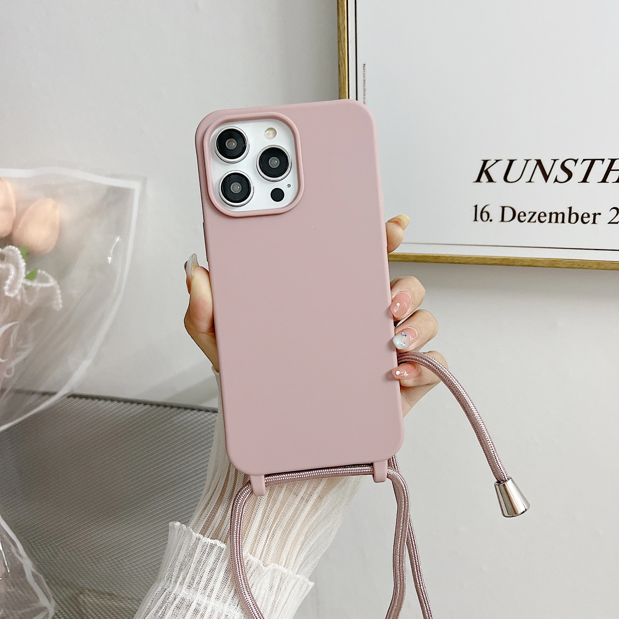 Чехол для телефона из жидкого силикона с цепочкой для Iphone 14, 13, 12 Pro, 11 Pro, Xs Max, Xr, 6, 7, 8 plus, Se