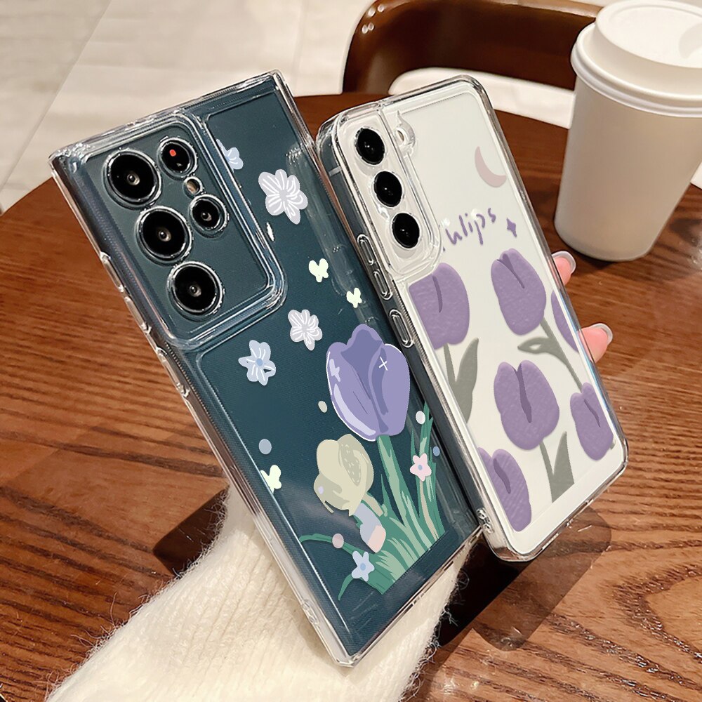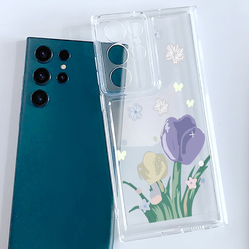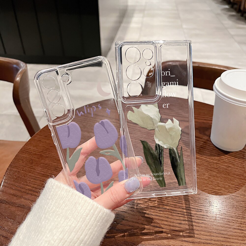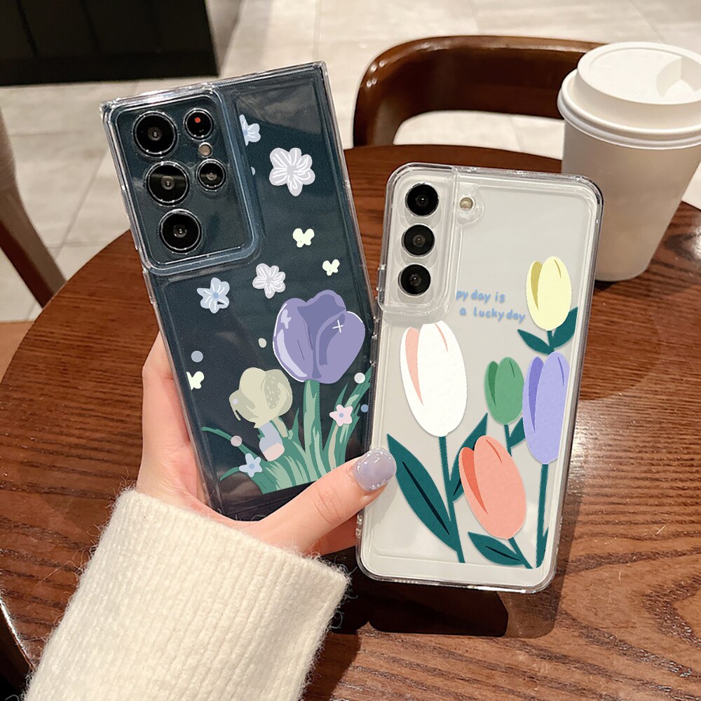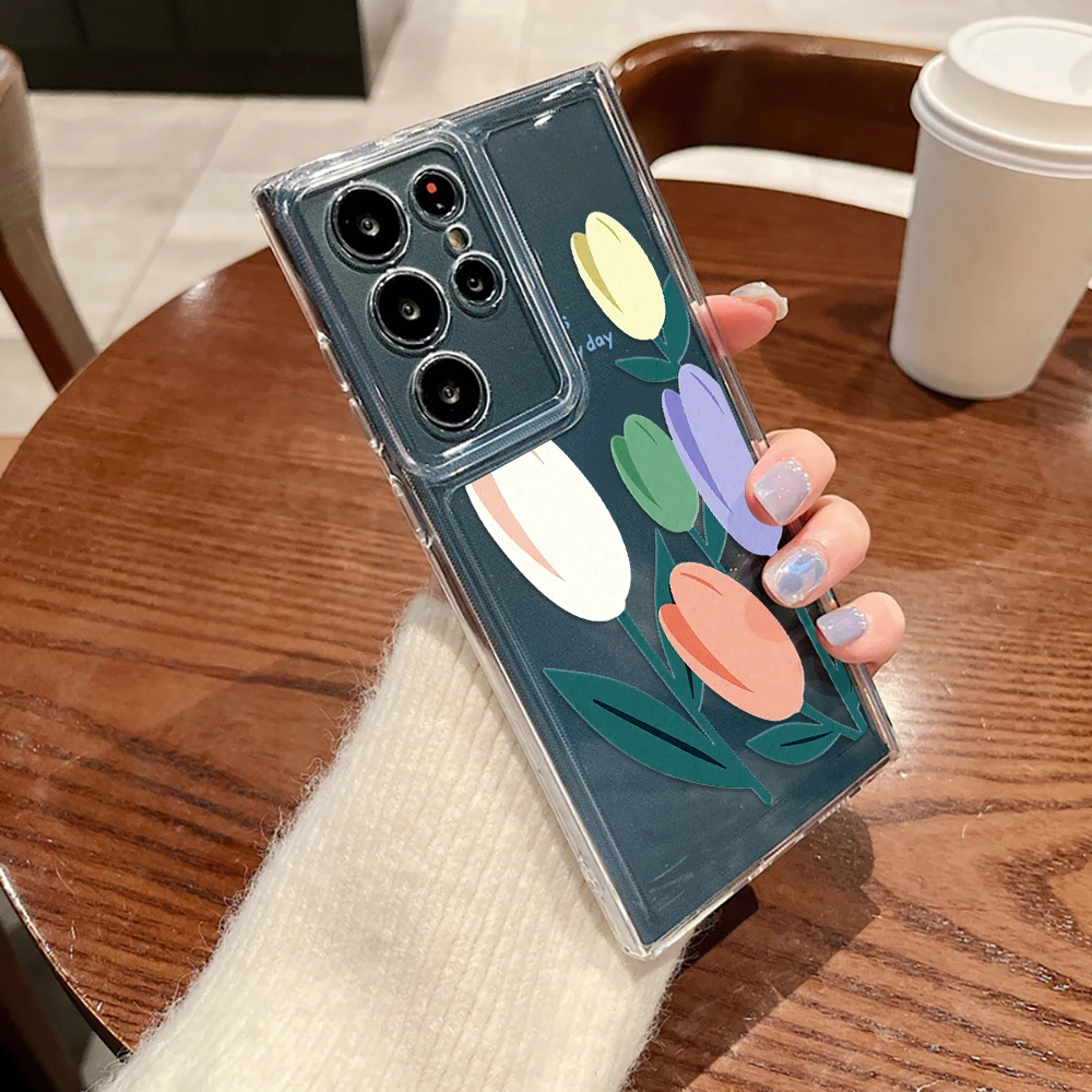 Чехол для телефона Samsung Galaxy S23 S23Ultra S22 S22Ultra S21Ultra S21 S20 FE Plus 5G разноцветные чехлы с тюльпанами прозрачный мягкий чехол