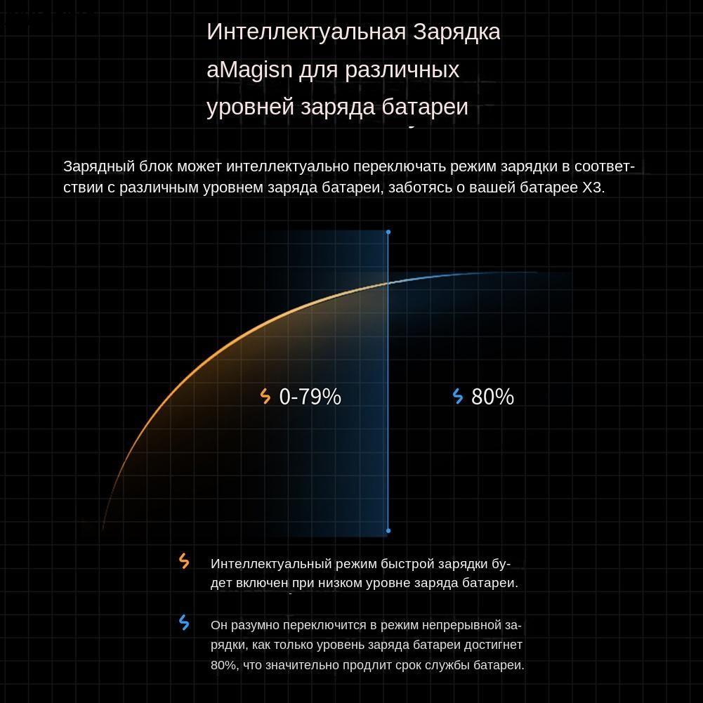 4. Интеллектуальные режимы зарядки: Зарядное устройство имеет интеллектуальные режимы зарядки, которые подстраиваются под различные уровни заряда батареи, обеспечивая оптимальный уход за вашей батареей.
