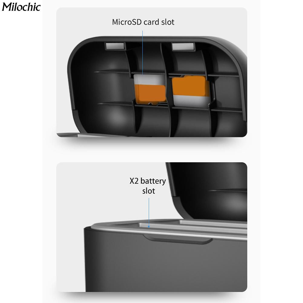 5. Дизайн чехла для хранения: В дополнение к зарядке аккумулятора зарядное устройство также служит чехлом для хранения аккумулятора и карты microSD, обеспечивая их упорядоченность и легкий доступ, когда они вам понадобятся.