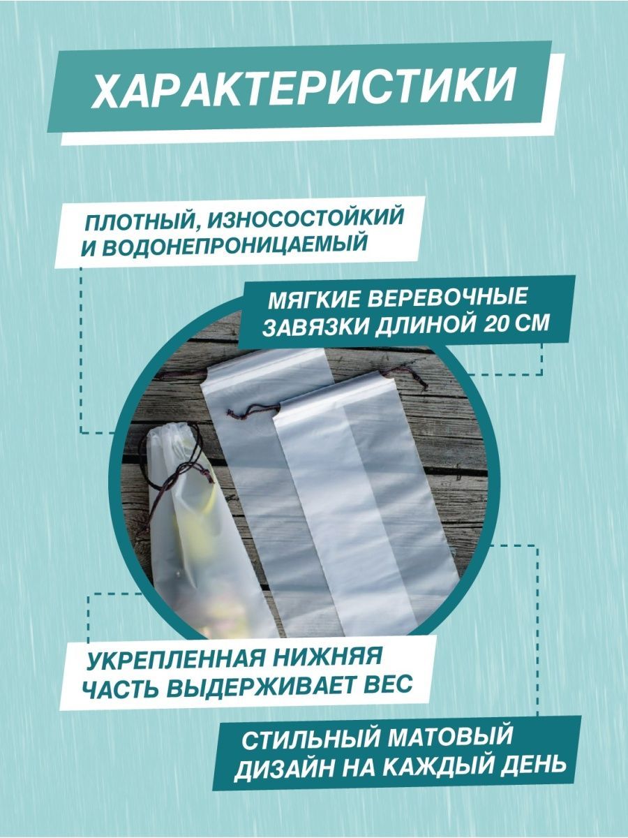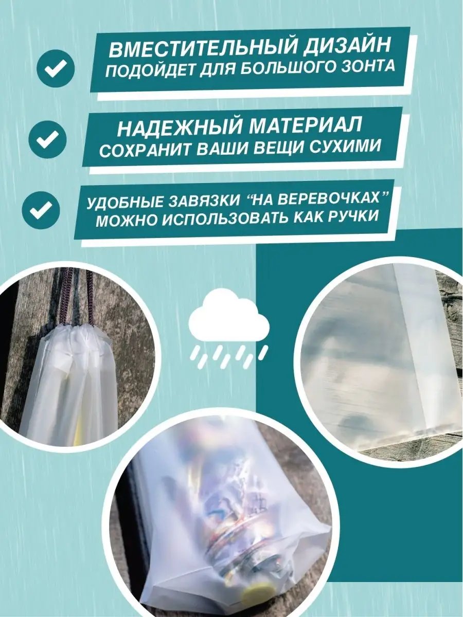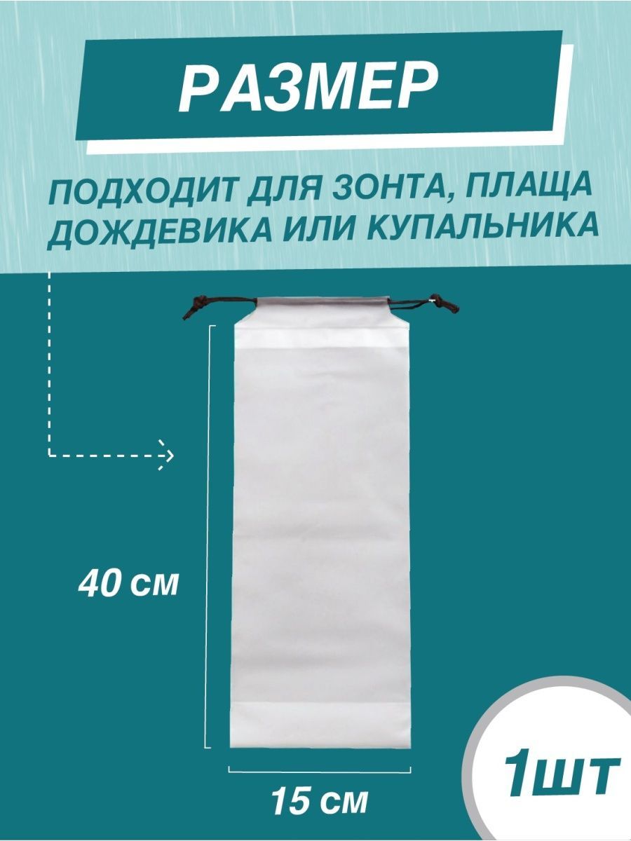 Описание: Универсальный пластиковый чехол для зонта - это стильный и современный аксессуар, который обладает множеством функций для повседневного использования. Этот водонепроницаемый чехол не просто предназначен для больших зонтов или зонтов-автоматов, он также является удобным аксессуаром для всей семьи в любой ситуации. Элегантный мешочек для зонта может быть использован как пакетик для мокрых вещей, вместительный органайзер для банных принадлежностей, надежная защита от влаги для документов и телефона, а также упаковка для оригинального подарка на 14 февраля и 8 марта. Чехол для мелких вещей абсолютно герметичен и изготовлен по новейшей технологии из прочного материала EVA. Он отличается усиленным дном и плотной спайкой по краю. Этот прозрачный чехол для зонта легко помещается в сумку, чемодан, рюкзак или автомобиль. Он также идеально подходит для детских зонтов, которые можно брать в школу. Прочный матовый материал чехла не протрется и не порвется. Модный чехол для зонта с веревочными завязками является оригинальным и практичным подарком как для взрослых, так и для детей.