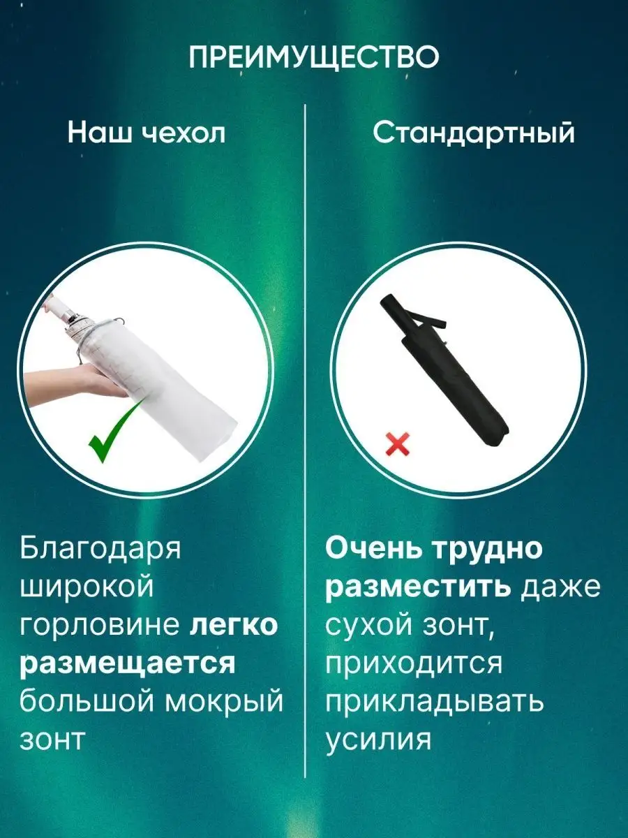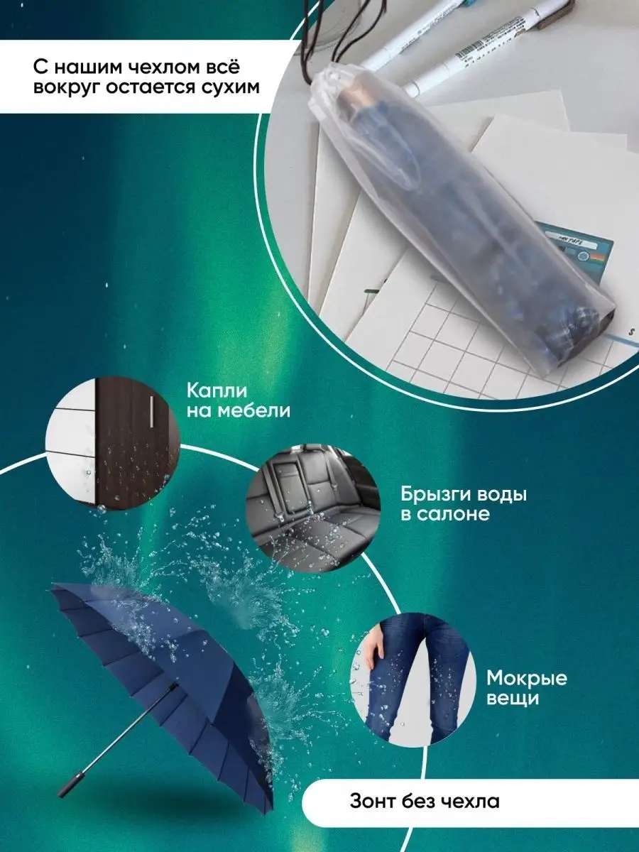 Описание: Закажите стильный водонепроницаемый чехол на зонтик. Универсальный чехол для зонта можно использовать как повседневный герметичный чехол для мелких вещей. Это надежная защита от влаги документов, пластиковых карт и ключей. Элегантный мешочек для зонта может стать органайзером для банных принадлежностей или герметичным пакетиком для мокрых вещей или упаковкой для оригинального подарка на 14 февраля и 8 марта. Прозрачный чехол для зонта сделан из современного EVA материала, не пропускающего влагу. Прочный чехол на зонт имеет усиленное дно и плотную спайку по краю. Пластиковый чехол для зонта подойдет как чехол на зонт-автомат большого размера. Чехол для зонта матовый пригодится для хранения телефона в дождливую погоду при прогулке или пробежке. Практичное решение, когда нужен чехол для всей семьи: у вас всегда под рукой будет чехол на детский зонт в школу, надежный чехол для зонта в сумку, чемодан, рюкзак или чехол на зонт в автомобиль и транспорт. Модный чехол для зонта с веревочными завязками станет удобным и полезным аксессуаром на каждый день.