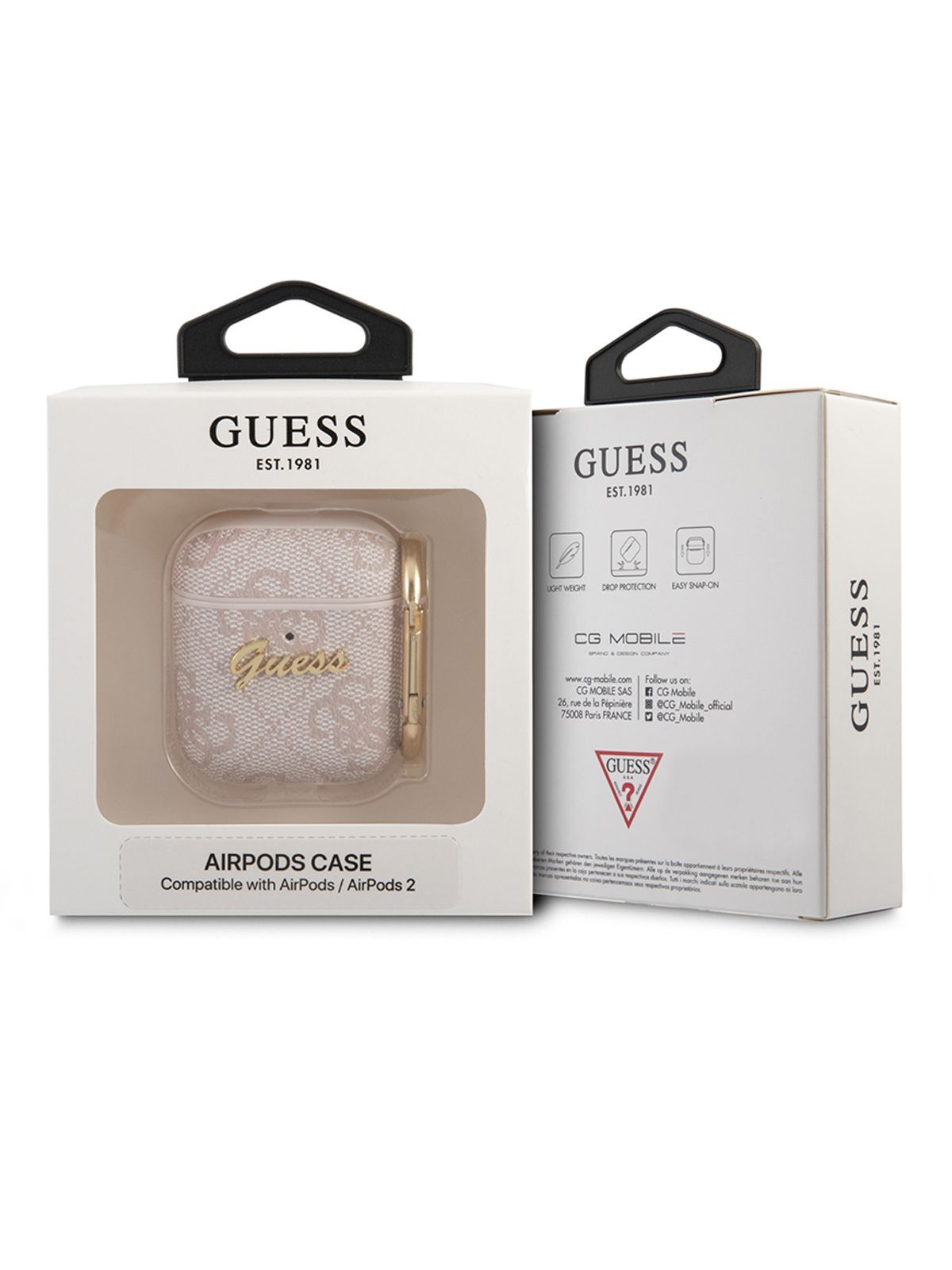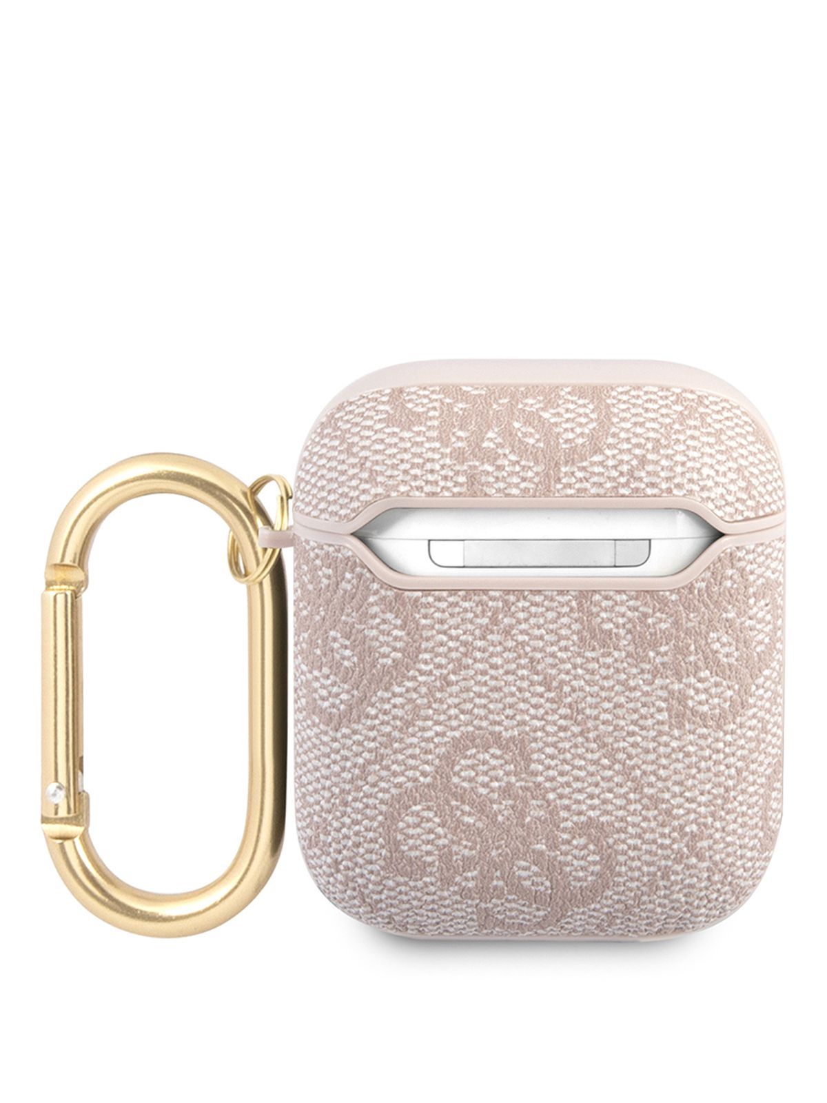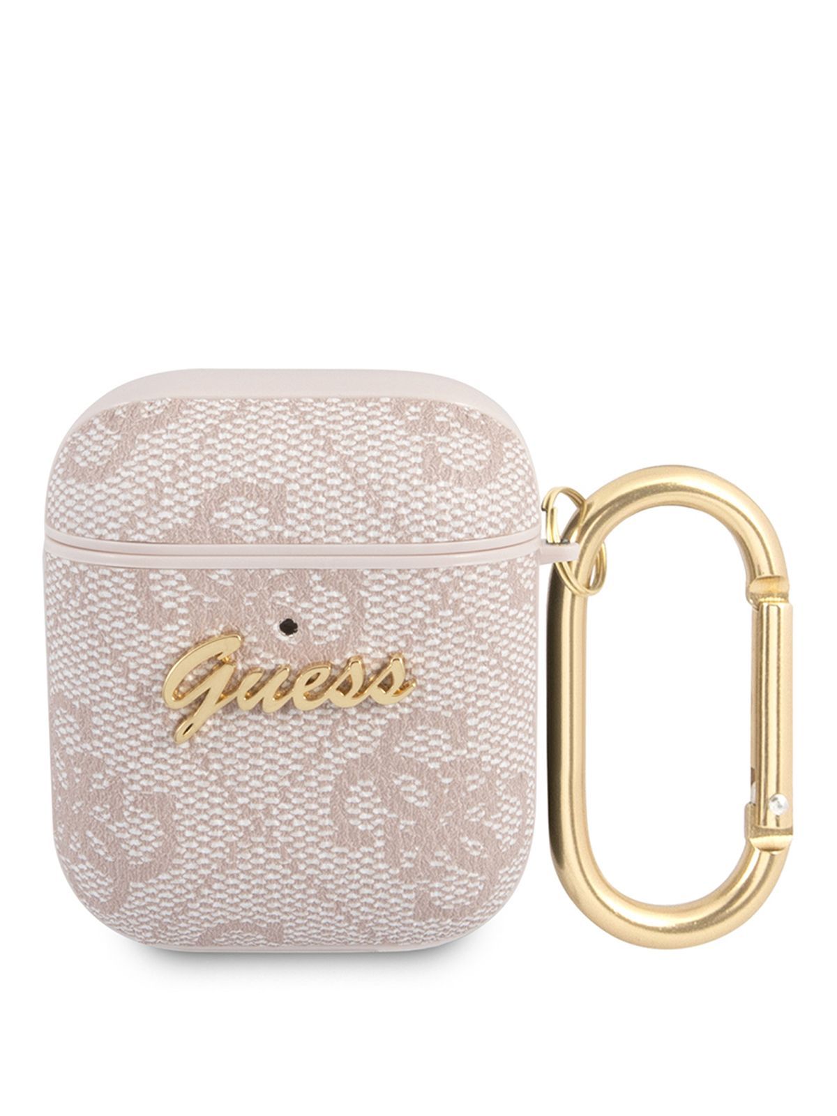 Чехол Guess PU leather на беспроводные наушники Apple Airpods 1, 2 / для Аирподс 1, 2 из экокожи с карабином и металлическим логотипом 4G, светло-розовый