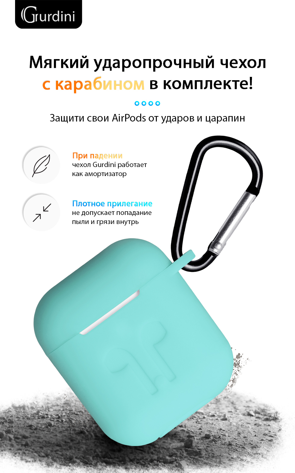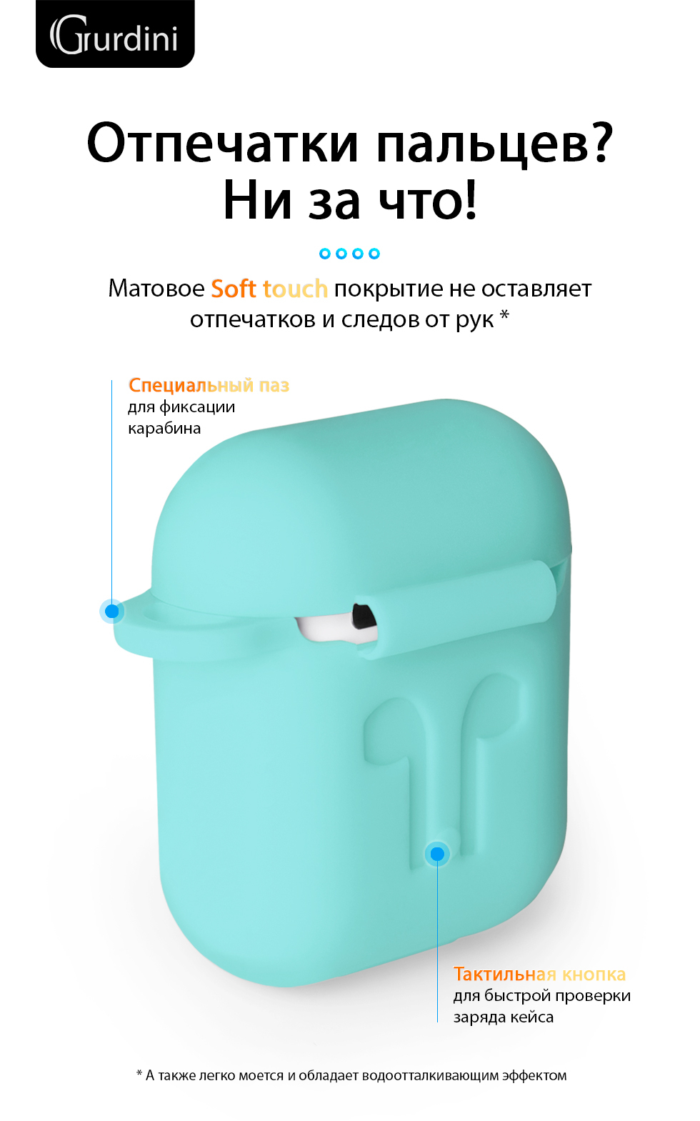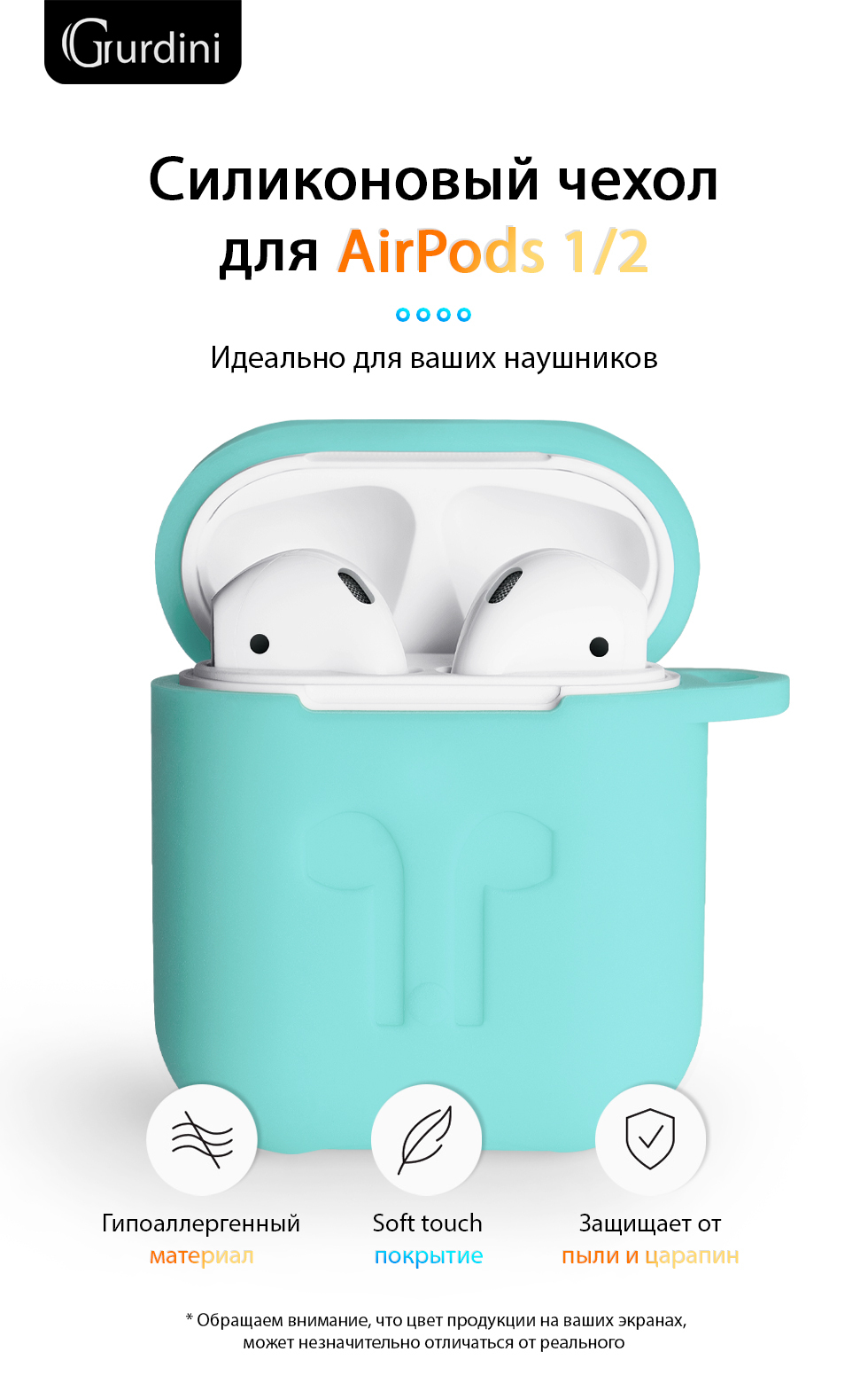Чехол Gurdini Soft Touch силиконовый 906249 для Apple Airpods,906249,мятный