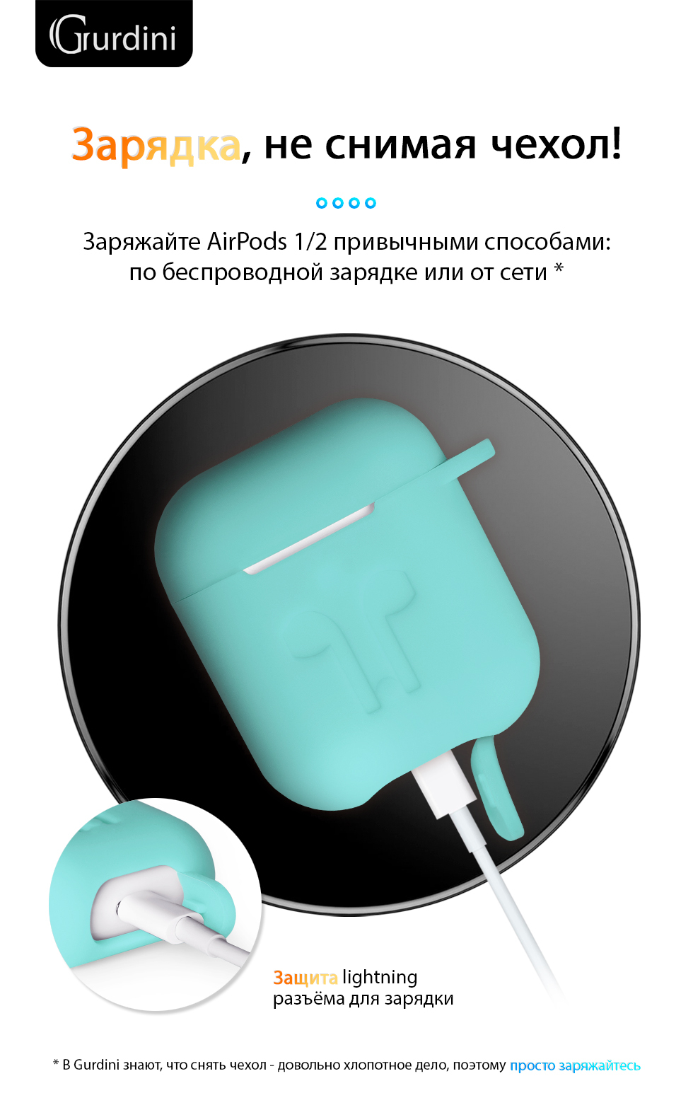 Описание: Чехол из качественного и тактильно приятного силикона для наушников Airpods 1-го или 2-го поколений. Данный чехол надежно защищает корпус зарядного кейса от царапин и внешних воздействий, придавая ему индивидуальный внешний вид. В комплекте идет карабин с помощью которого можно прицепить наушники к сумке, брелку, ремню.
