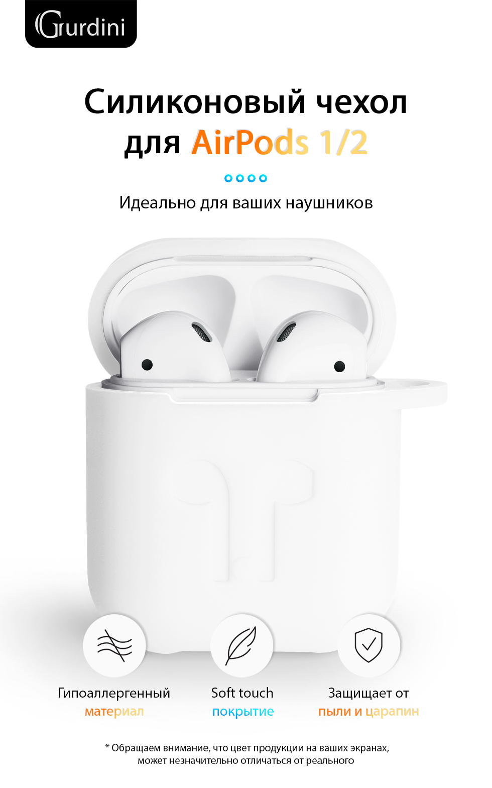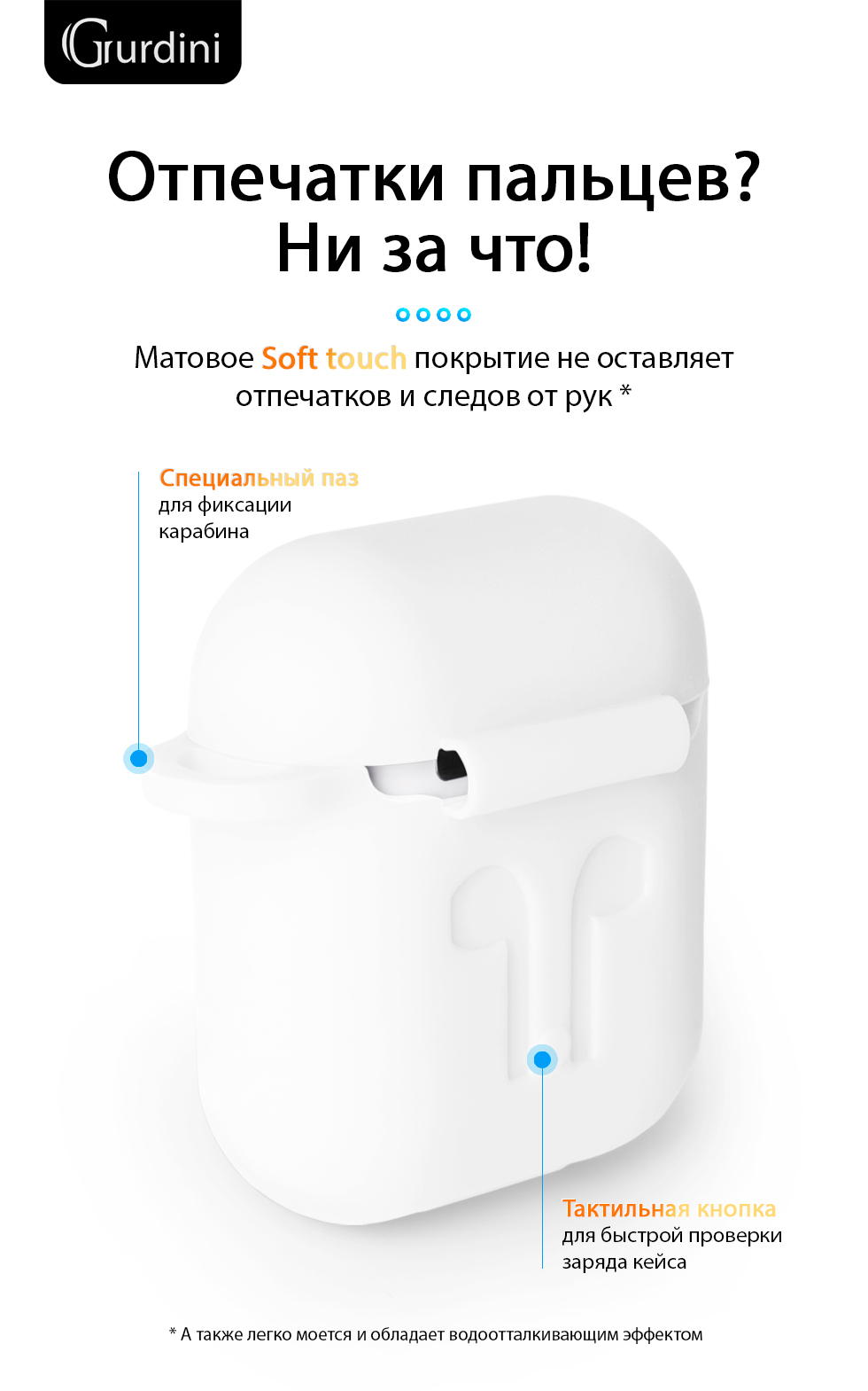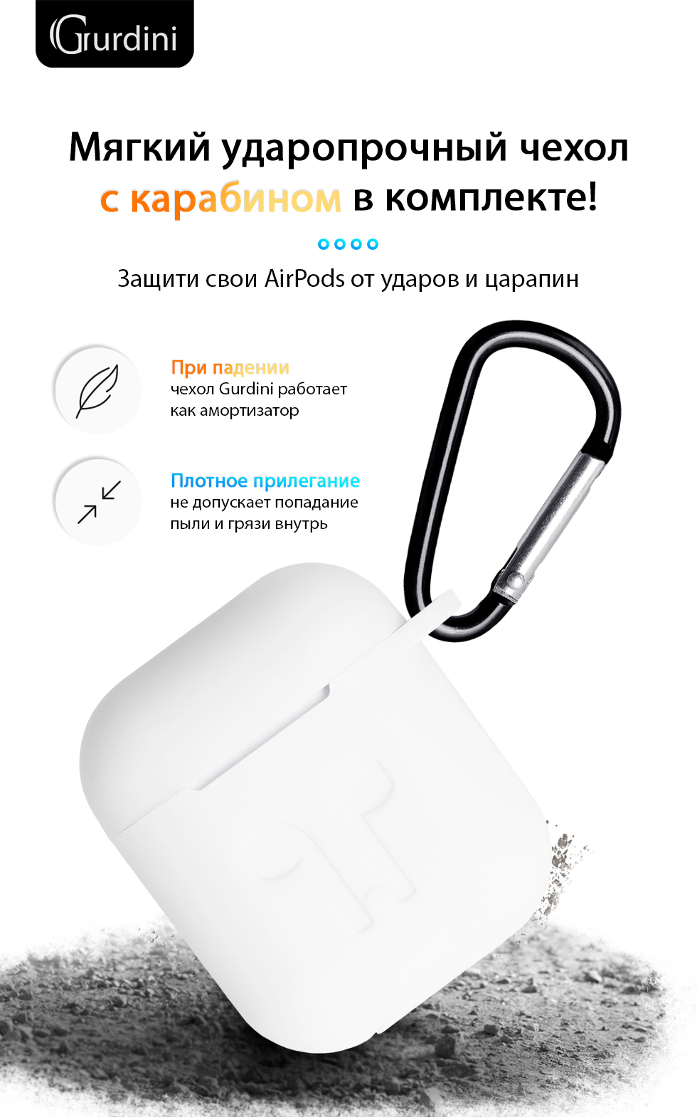 Чехол Gurdini Soft Touch силиконовый 906287 для Apple Airpods,906287,белый