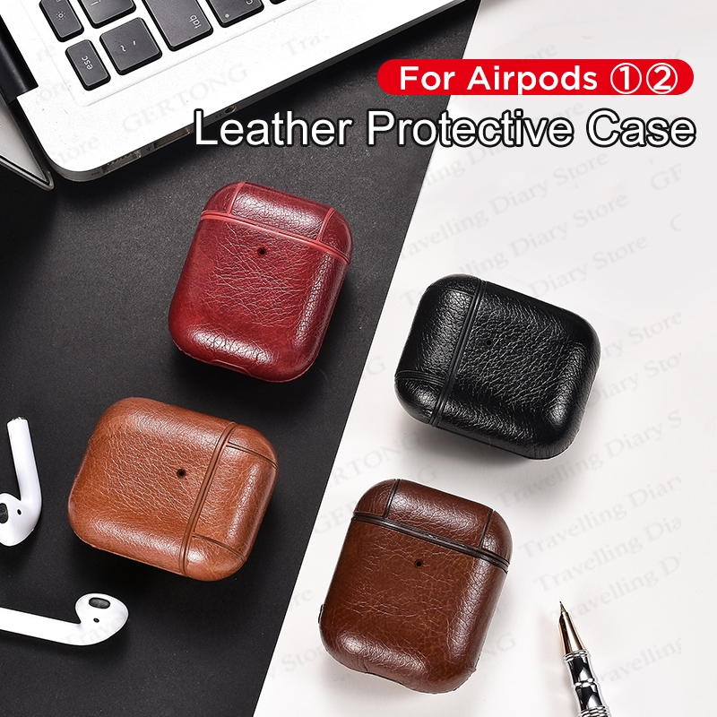Headphone Case For Airpods 1 2 Leather Case Luxury Genuine Cover Shell For Apple AirPods 1 2 Air pods 1 Earphone Accessories Bag