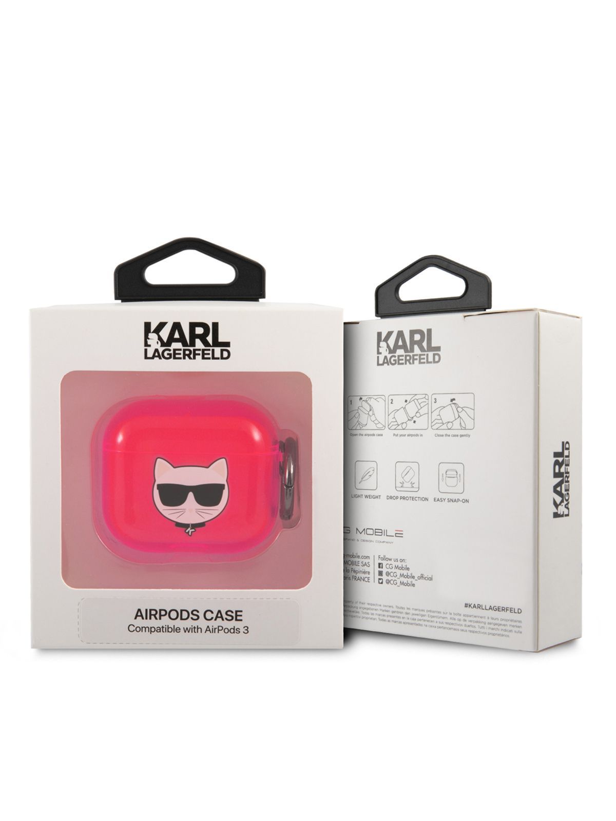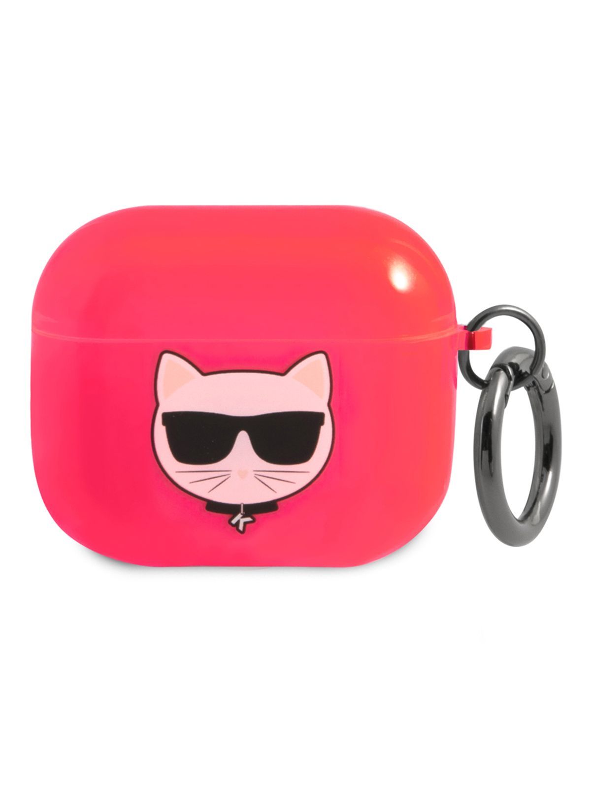 Чехол Karl Lagerfeld для наушников Apple Airpods 3 / кейс на наушники Аирподс 3, флуоресцентный силиконовый с карабином TPU FLUO Choupette, розовый
