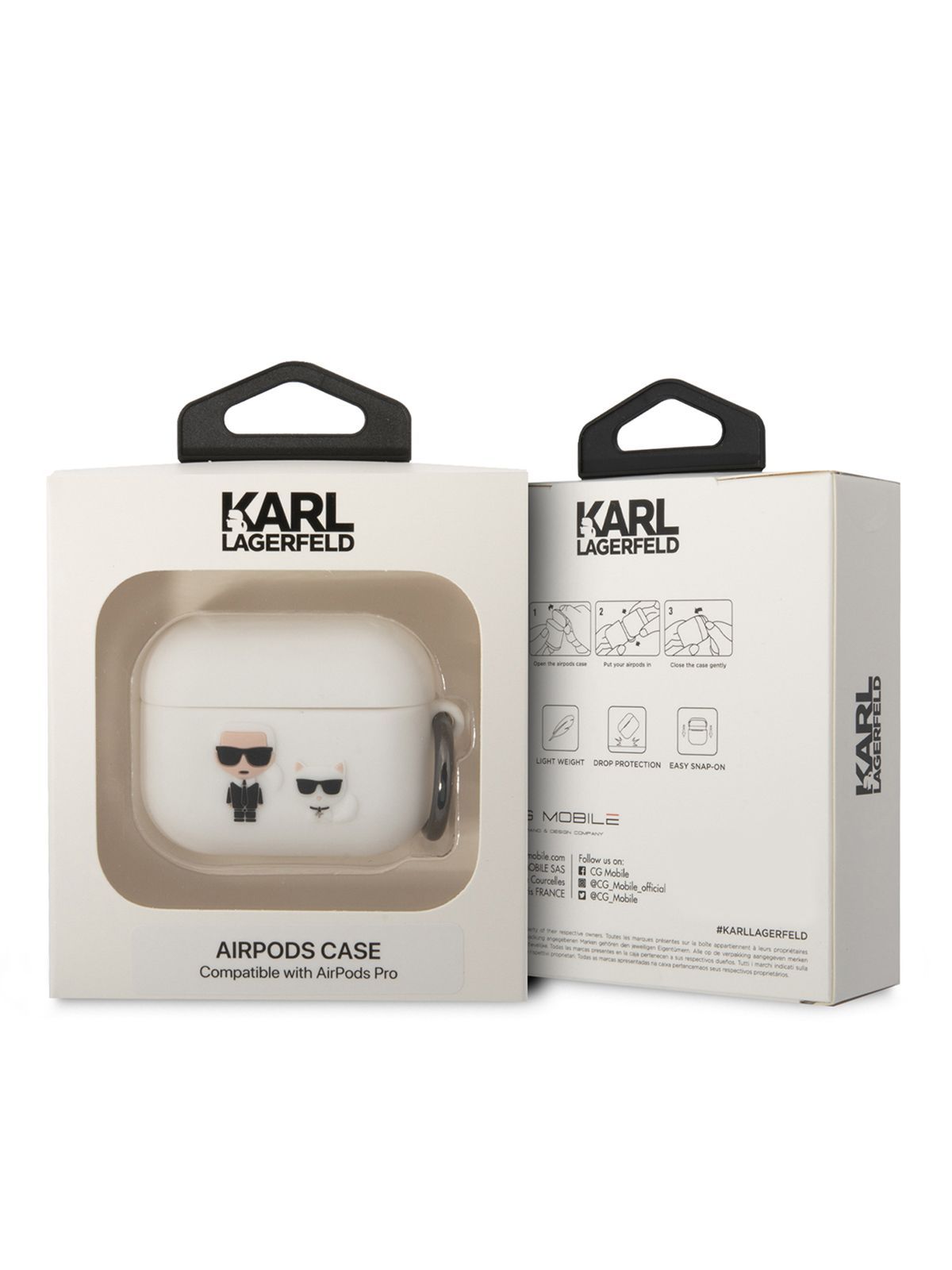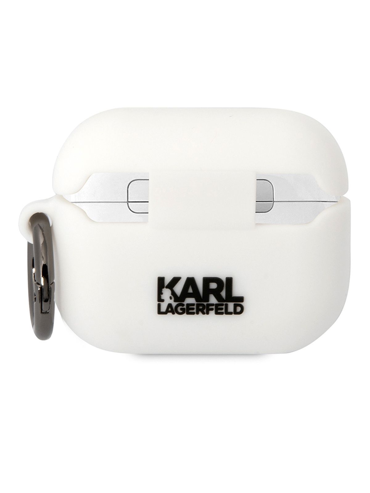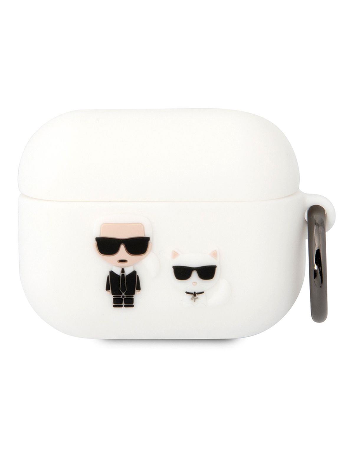 Чехол Karl Lagerfeld для наушников Apple Airpods Pro / кейс на наушники Аирподс Про силиконовый с карабином Karl & Choupette, белый