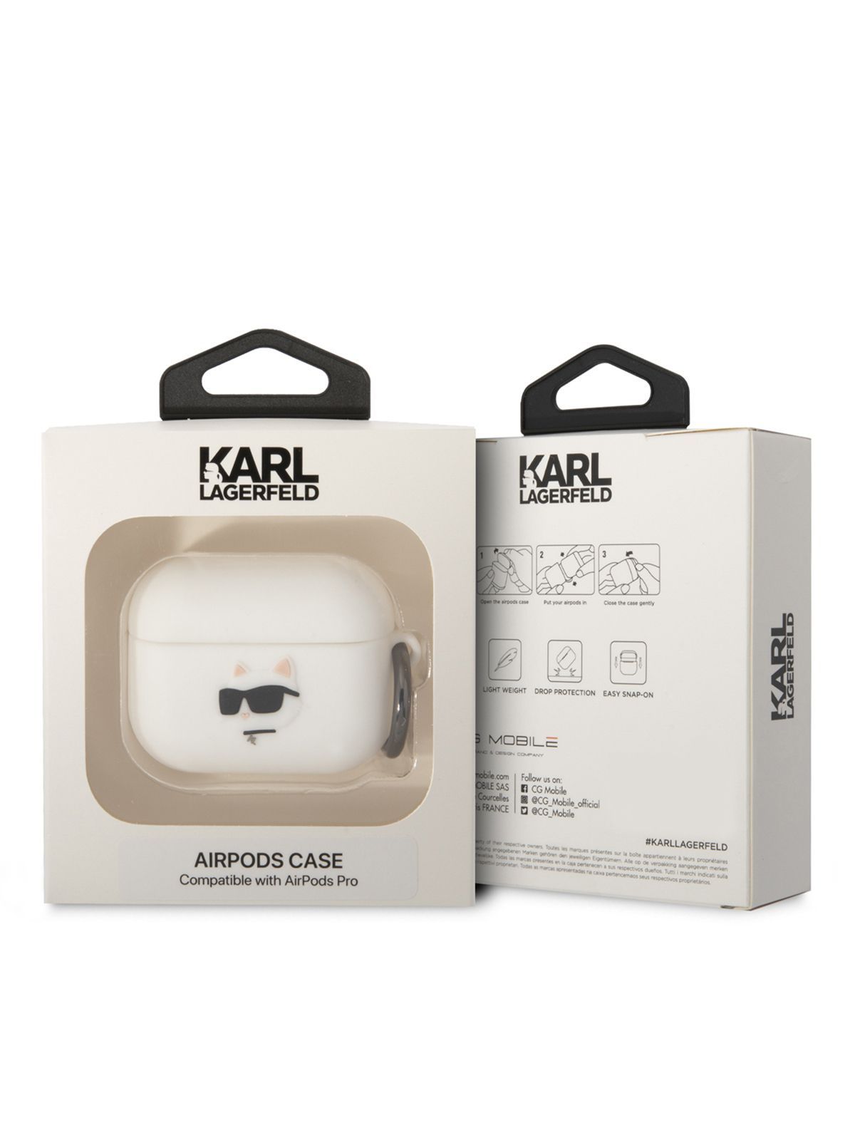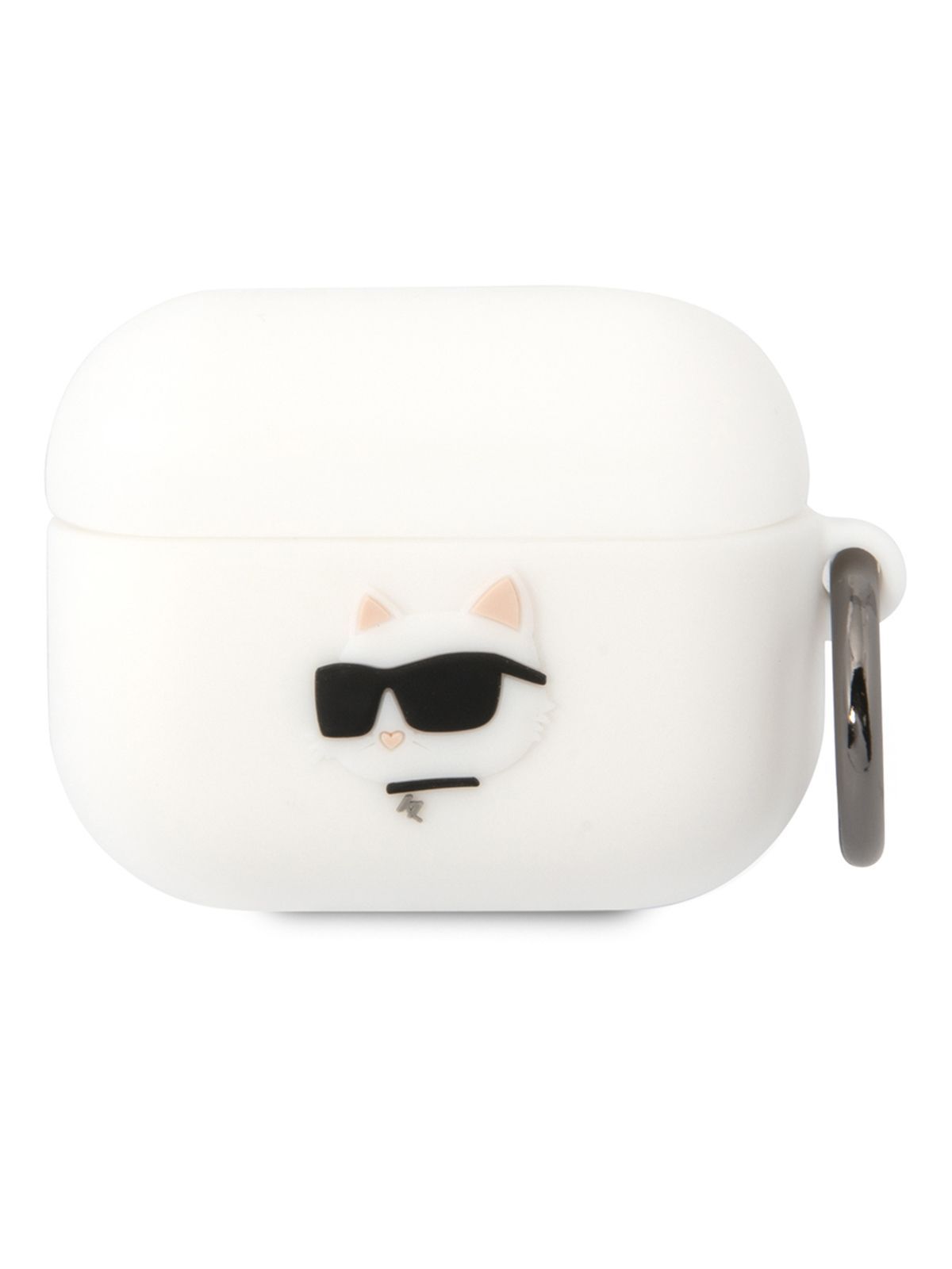 Чехол Karl Lagerfeld Silicone для наушников Apple Airpods Pro / Аирподс про, силиконовый, с карабином, с принтом NFT 3D Choupette, белый
