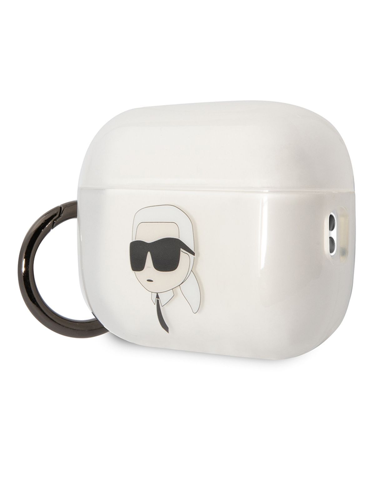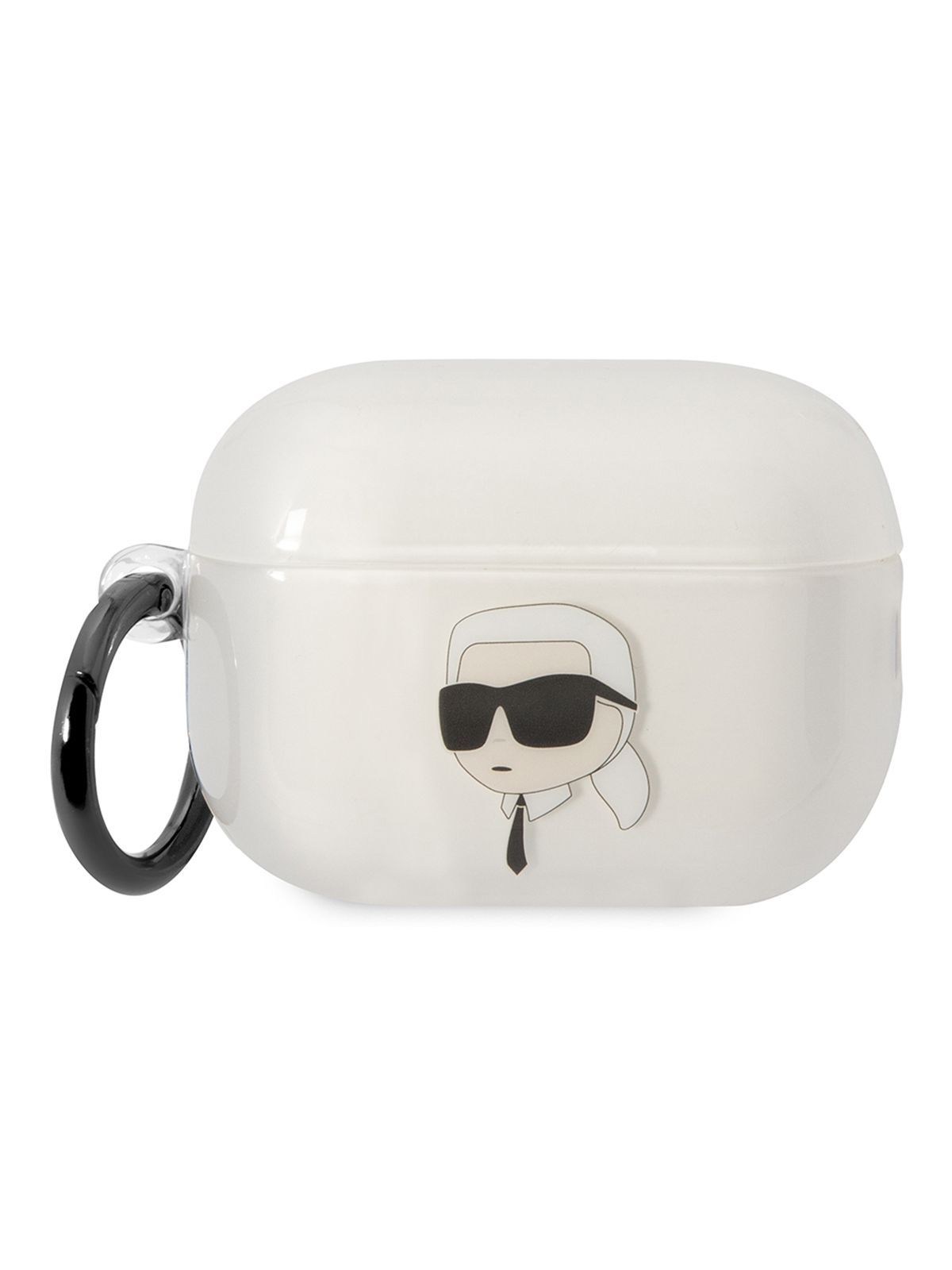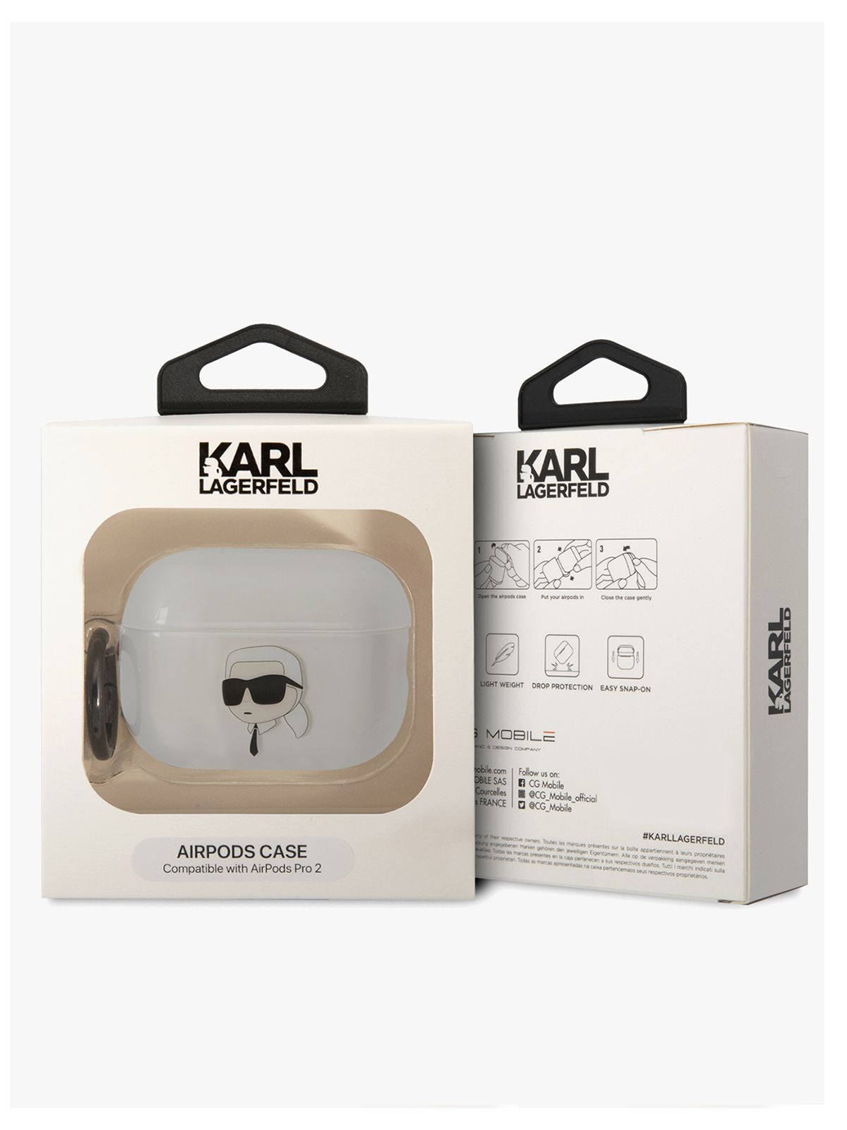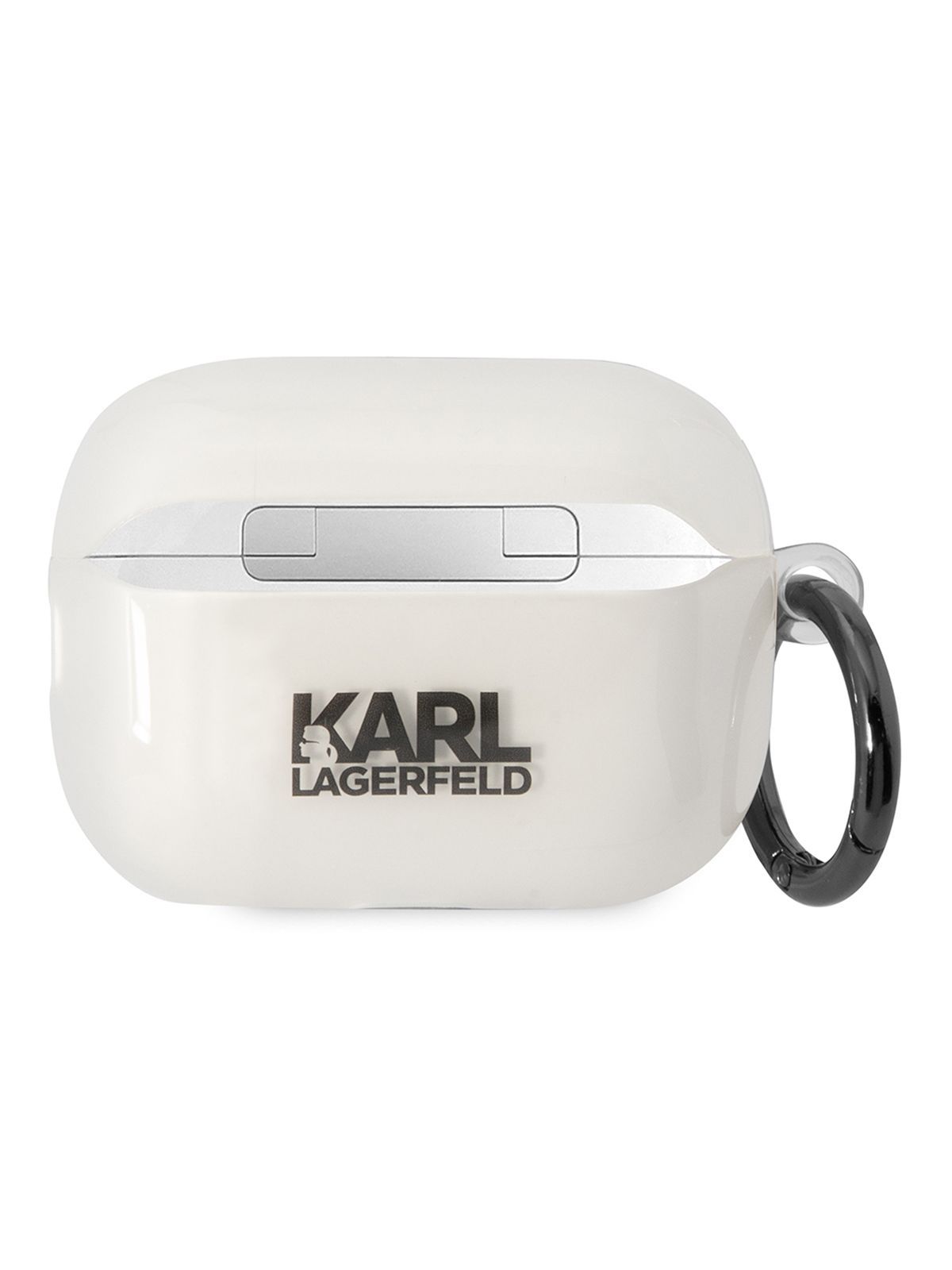 Чехол Karl Lagerfeld TPU для наушников Apple Airpods Pro 2 / Аирподс про 2, силиконовый, с карабином, с принтом NFT Karl, прозрачный