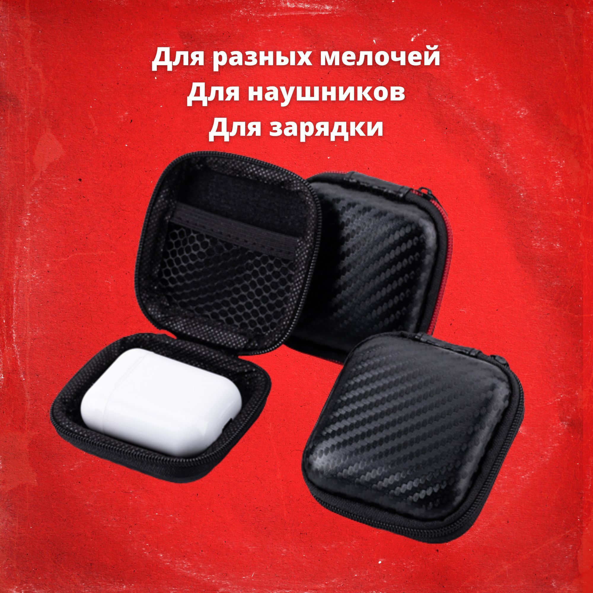 Чехол-кейс для беспроводных и проводных наушников, на молнии, черный карбон