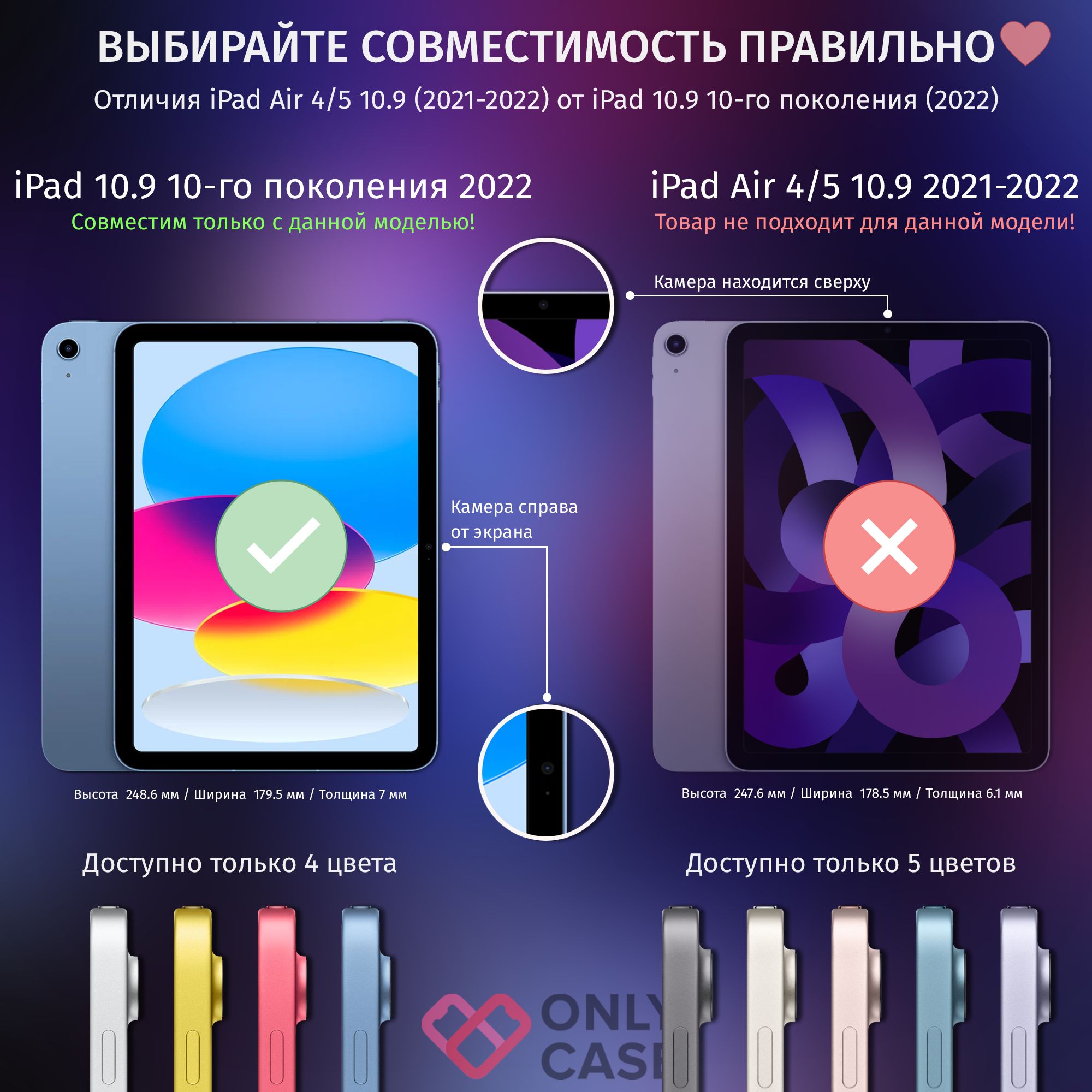 Описание: Чехол книжка ONLY CASE (Simple Case) для Apple iPad 10.9 10-го поколения (2022 года)Стильный чехол и аксессуар для планшета, который защитит iPad от внешних повреждений вследствие ежедневного использования.
