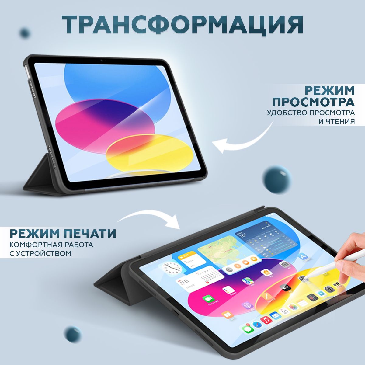 Функция умный чехол для Айпад 10 10.9 (2022) - выполняет блокировку или разблокировку устройства путем закрытия и открытия обложки (крышки) соответственно.