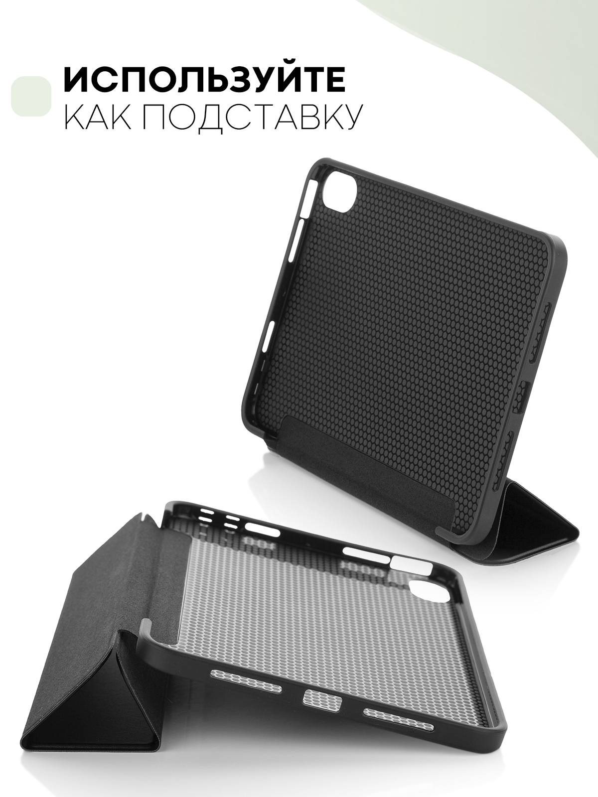 Описание: Чехол на Айпаде приковывает взгляды, руки так и тянутся рассмотреть. Сверху экран устройства закрывает мягкая, но плотная крышка с таким нежным покрытием внутри, что она ни за что не поцарапает дисплей Apple iPad mini 6 (2021). У крышки этой - по углам магнитики, что надёжно цепляются и не дают крышке открыться. Не менее мягкий приём ждёт планшет и сзади: силиконовый чехол плотно садится на корпус, оставляя при этом все необходимые отверстия: от разъёма для зарядки до микрофона. В меру толстый, чехол не сильно увеличивает в размерах планшет, но при этом смягчает такие невзгоды внешнего мира, как удары и падения. Крышка, кстати, здесь не простая, а волшебная: при закрывании экран сразу выключается и происходит блокировка планшета, при открывании - экран включается сам, остается только снять блокировку. Крышка также может сгибаться, превращаясь в удобную подставку для планшета, которая всегда под рукой.
