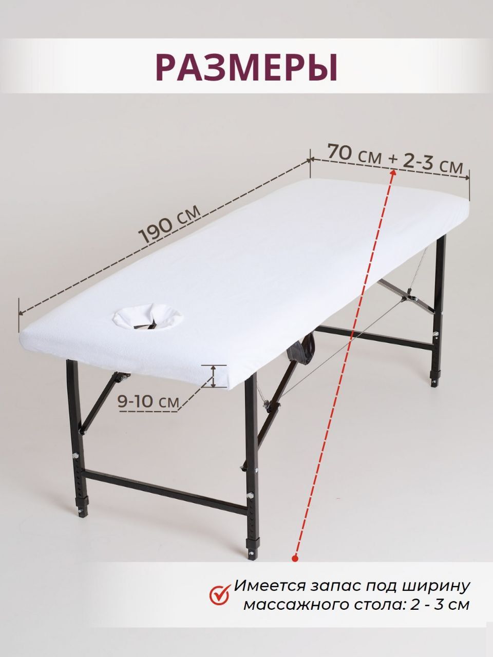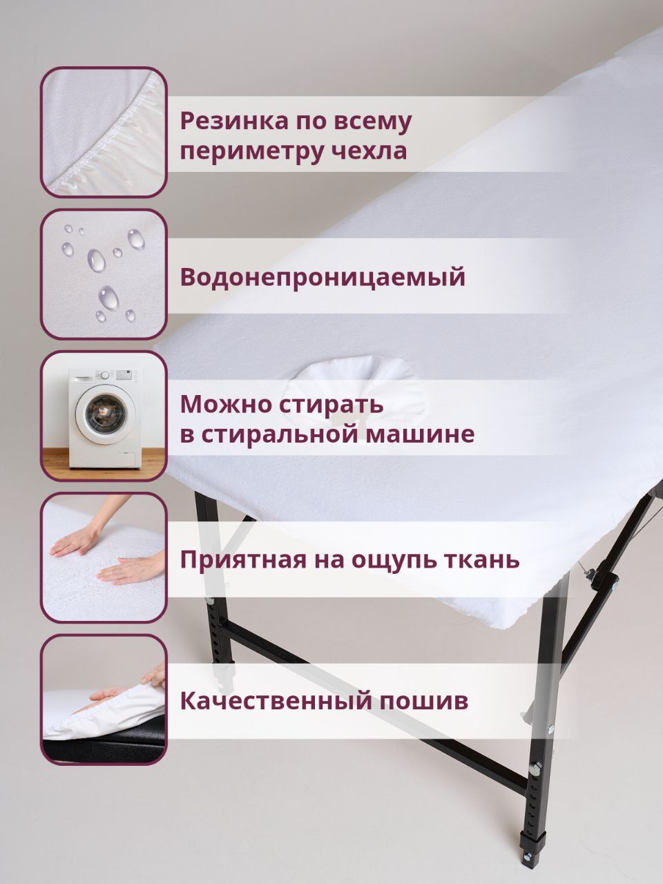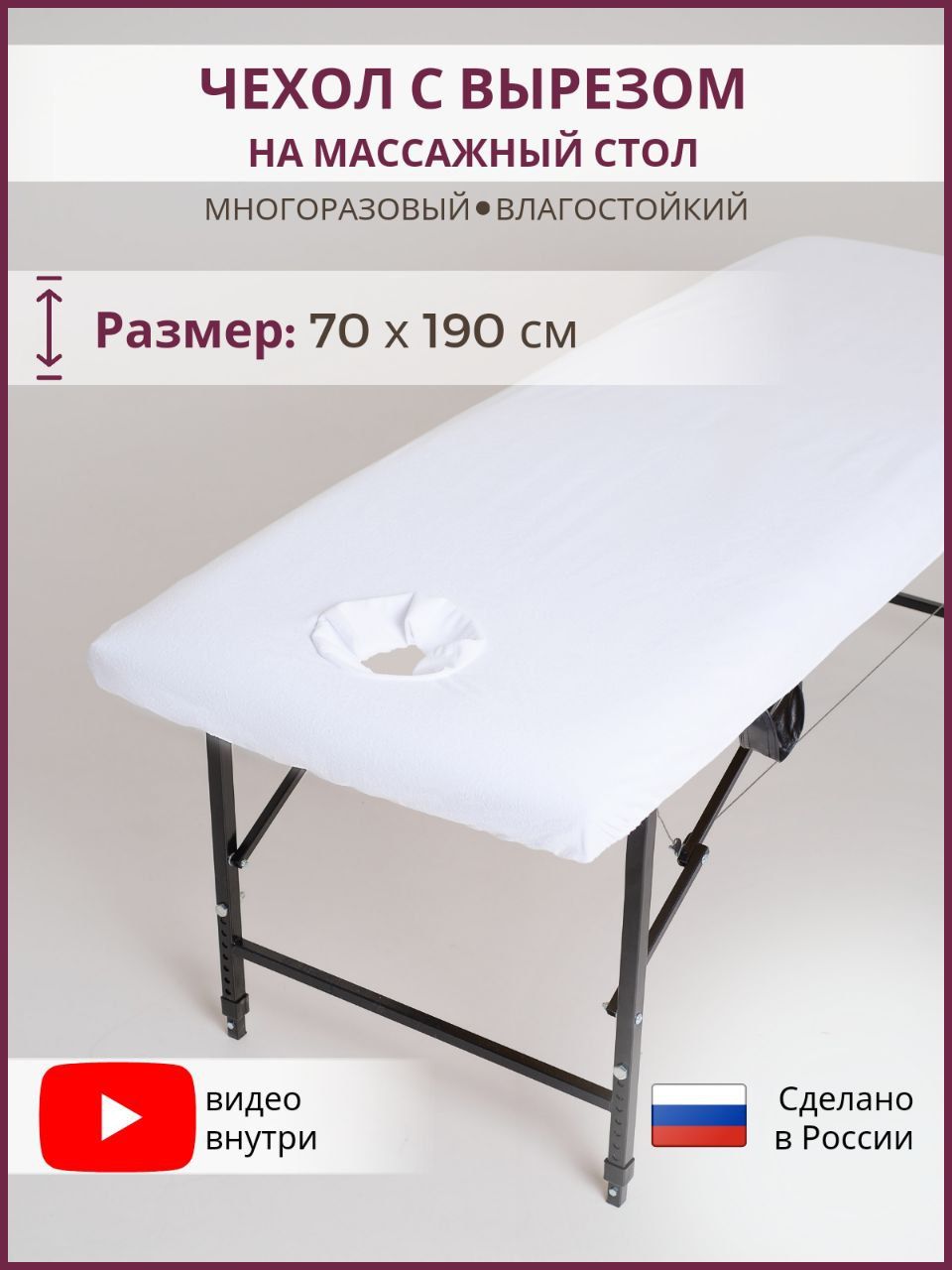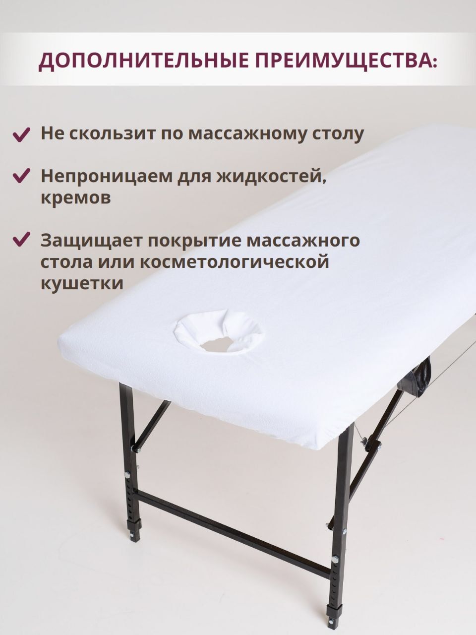 Чехол на кушетку/массажный стол с вырезом для лица махровый непромокаемый белый 190*70