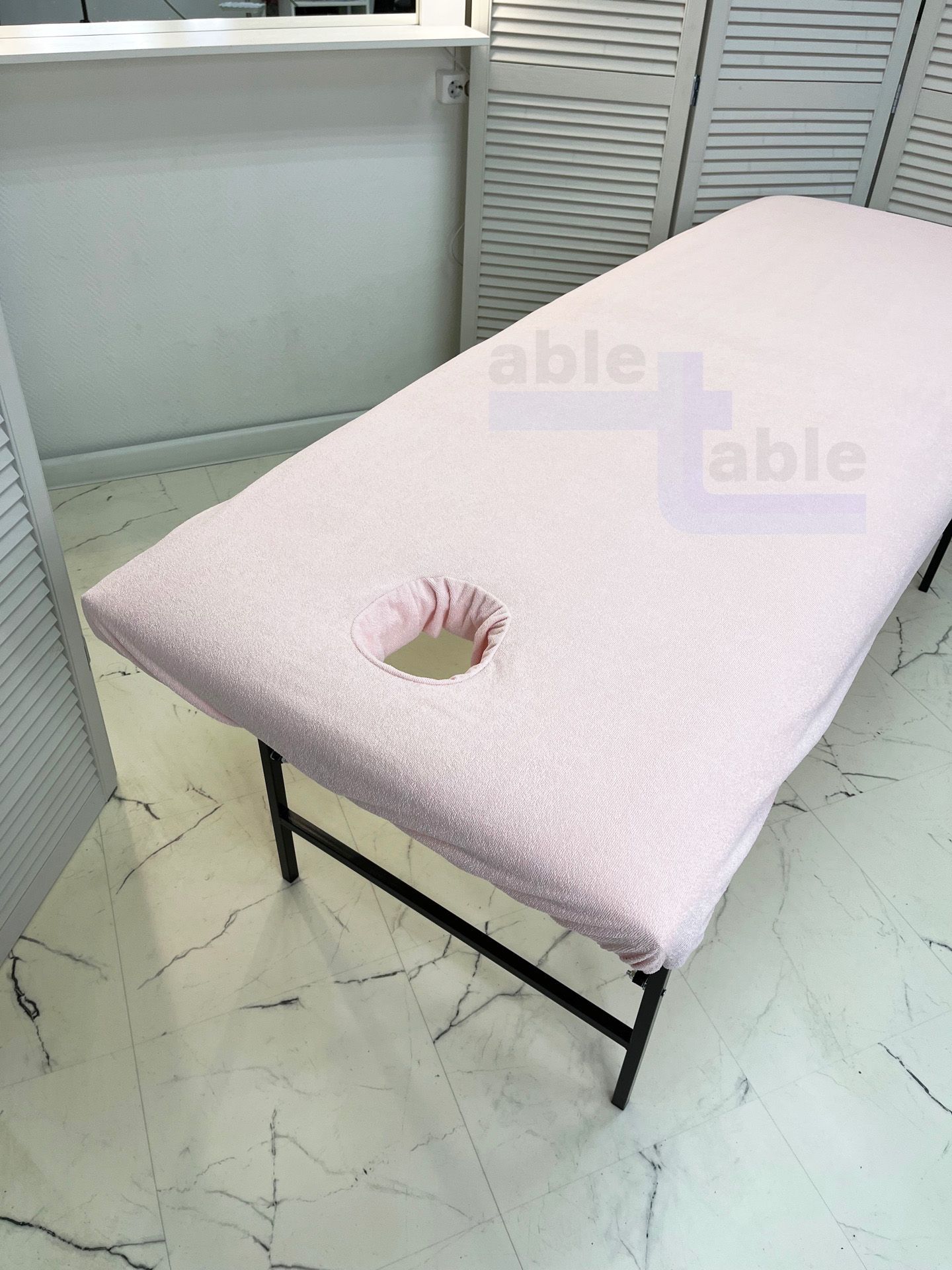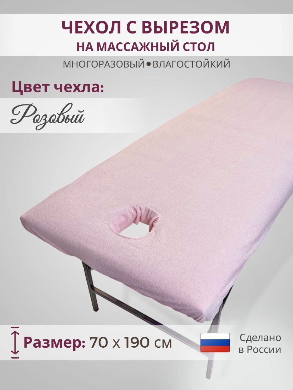 Чехол на кушетку/массажный стол с вырезом для лица махровый розовый непромокаемый 190*70