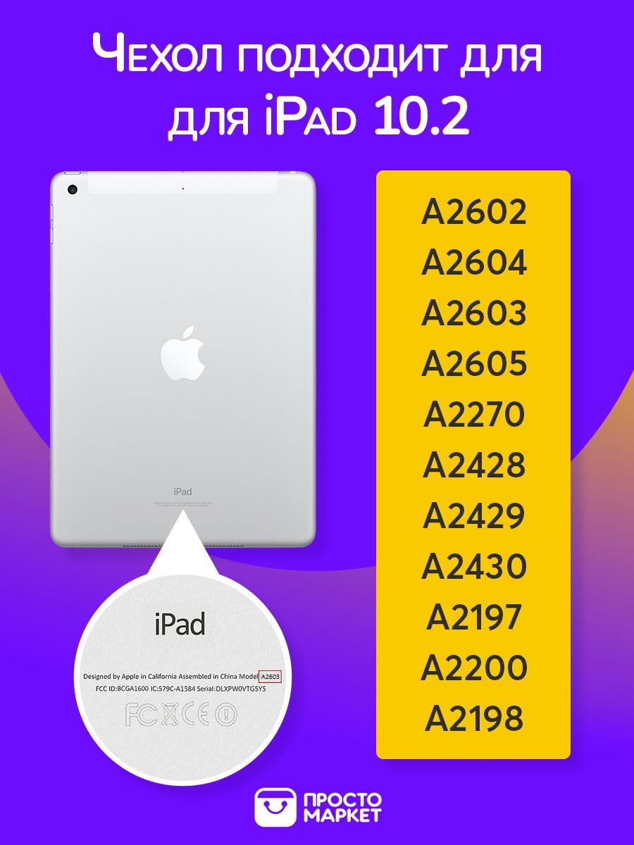 Apple iPad 7 2019 Apple iPad 8 2020 Apple iPad 9 2021 A2602 на iPad (9-го поколения) A2604 на iPad (9-го поколения) A2603 на iPad (9-го поколения) A2605 на iPad (9-го поколения) A2270 на iPad (8-го поколения) A242 8на iPad (8-го поколения) A2429 на iPad (8-го поколения) A2430 на iPad (8-го поколения) A2197 на iPad (7-го поколения) A2200 на iPad (7-го поколения) A2198 на iPad (7-го поколения) Номер модели (на задней крышке корпуса)