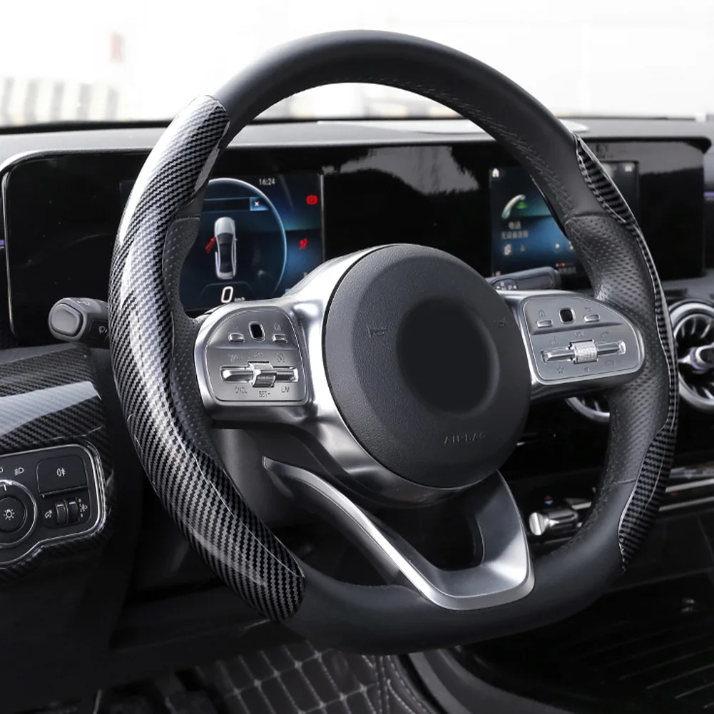Чехол на руль автомобиля из углеродного волокна, аксессуары для салона автомобиля, универсальные аксессуары для украшения руля автомобиля