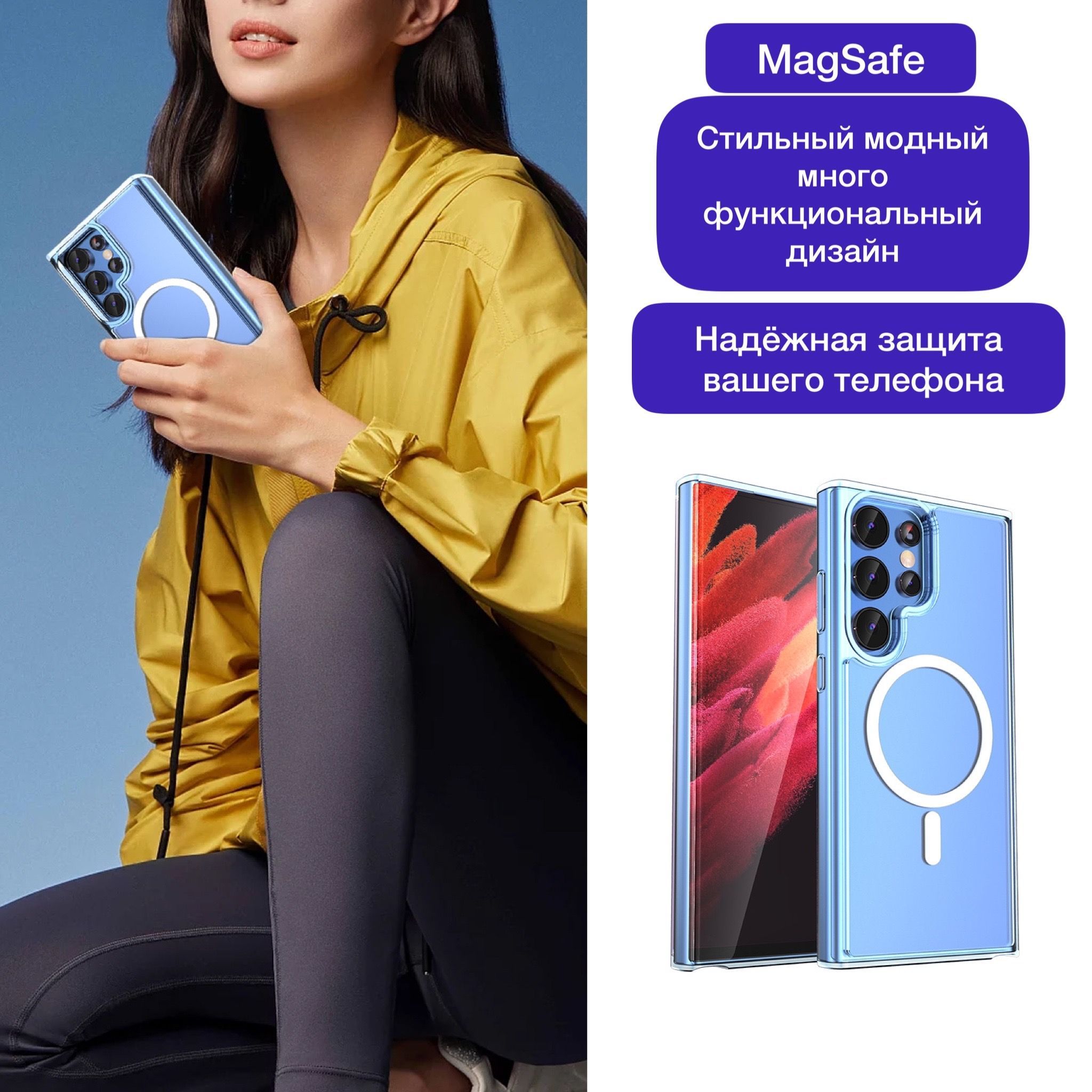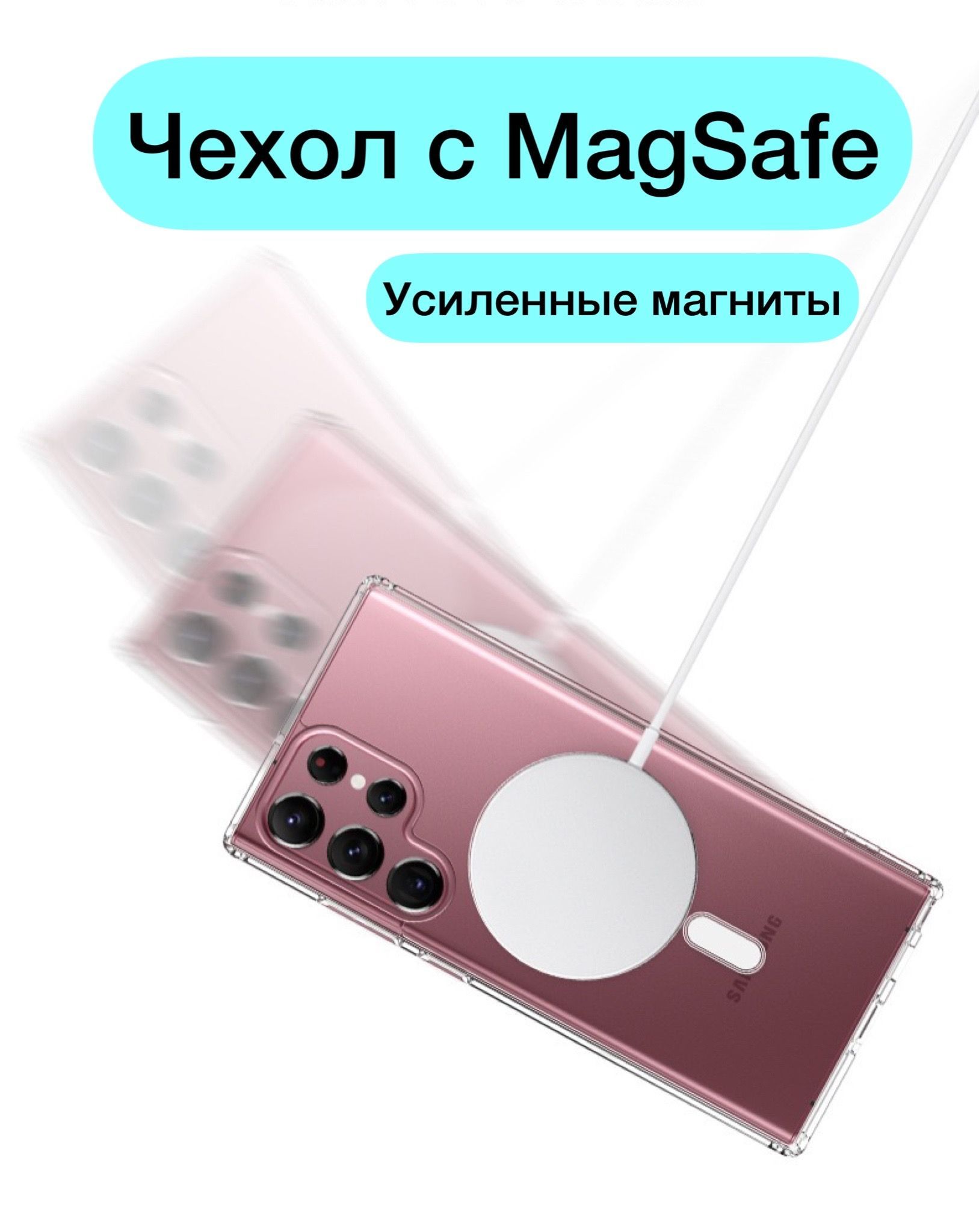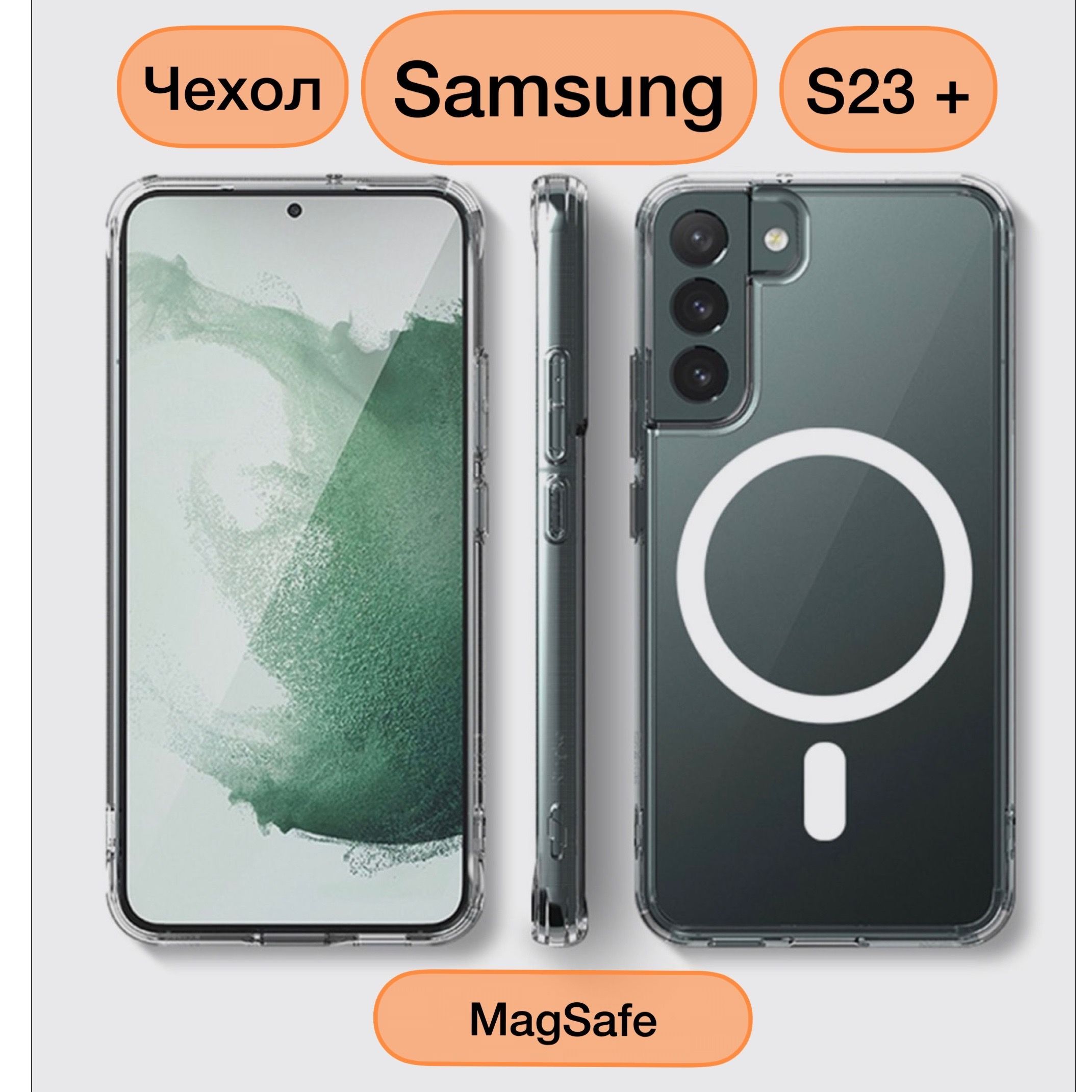 Чехол прозрачный для Samsung Galaxy S23+ с MagSafe силиконовый на Самсунг С23+ магнит для беспроводной зарядки