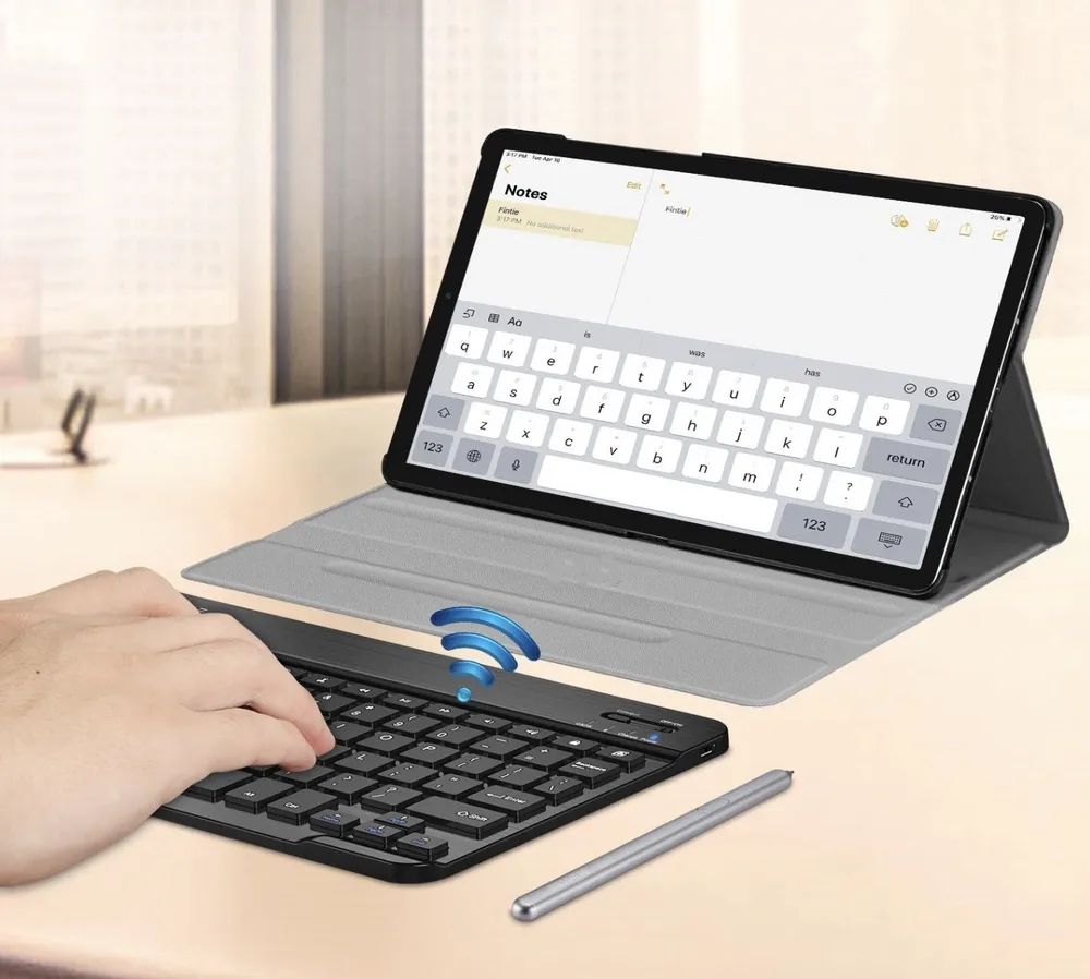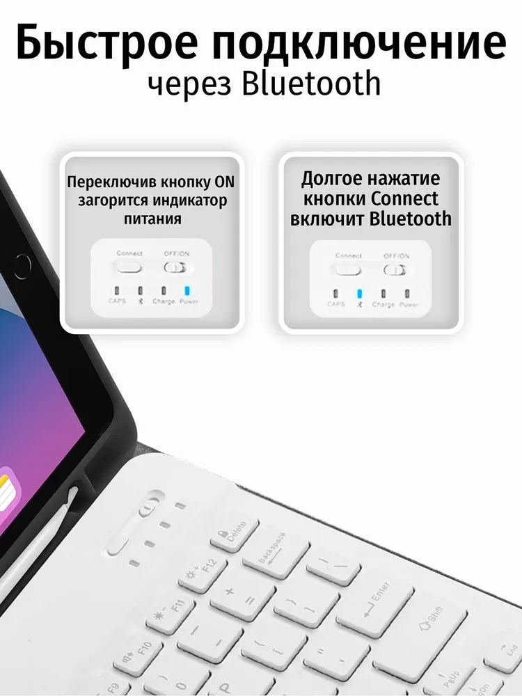 Описание: Чехол со съемной Bluetooth клавиатурой - это полноразмерная клавиатура, которая всегда у вас под рукой. Быстрая и легкая трансформация вашего планшета в ноутбук. Конструкция чехла легко трансформируется в подставку под нужным углом для комфортной работы на планшете.