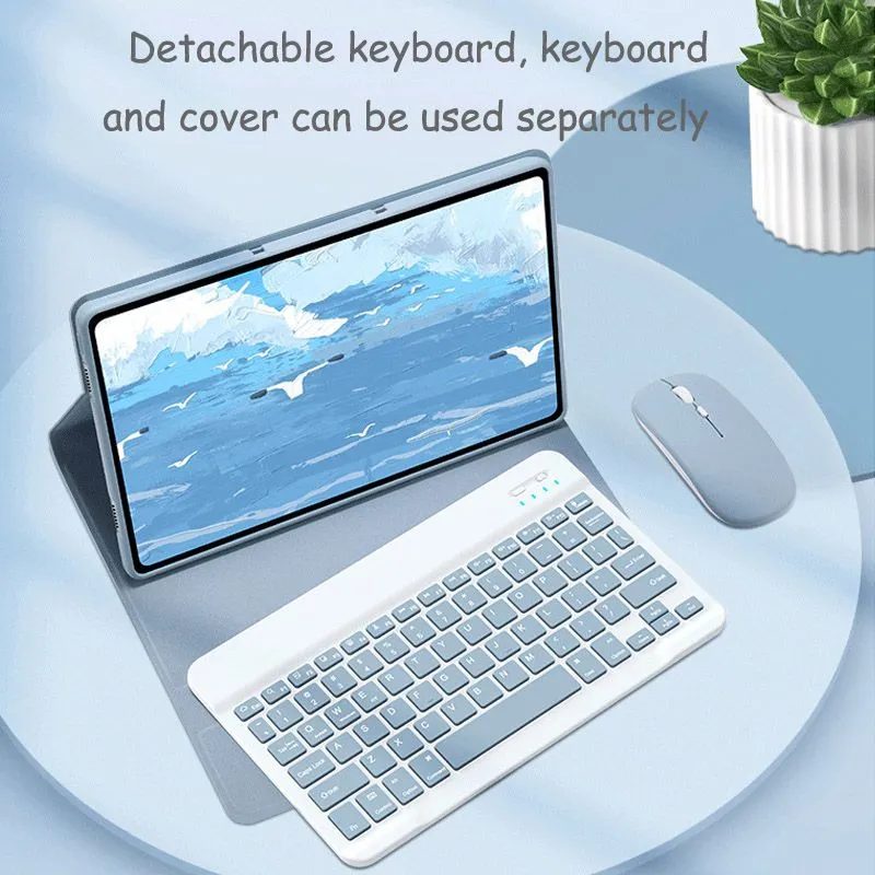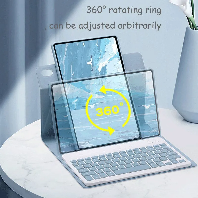 Магнитная съемная клавиатура: магнитная беспроводная клавиатура снимается и перемещается, что позволяет легко разместить iPad и клавиатуру в удобном положении.