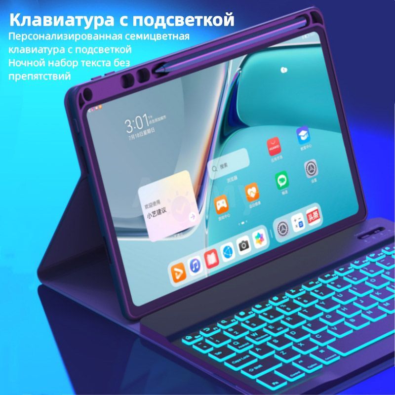 Съемная магнитная клавиатура с подсветкой: 7 цветов подсветки делают набор текста увлекательным и легким в темноте / ночью. Магнитная конструкция облегчает разборку / установку и позволяет переключаться между легким ноутбуком и планшетом.