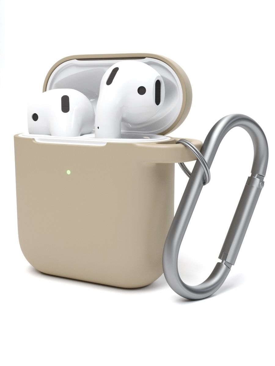 Чехол силиконовый с карабином для APPLE Airpods 1/2, цвет: серый