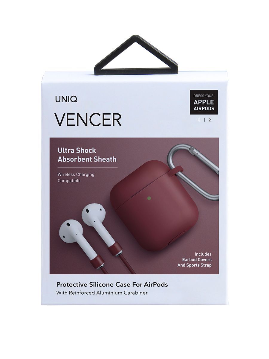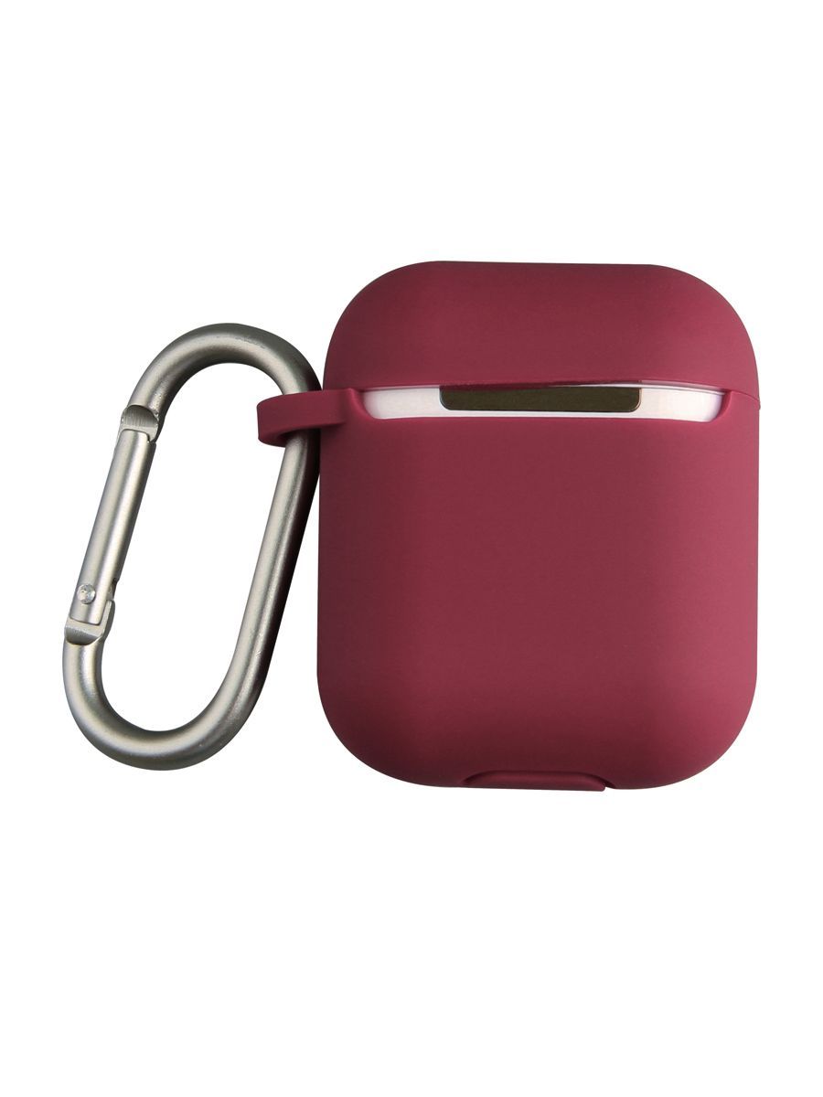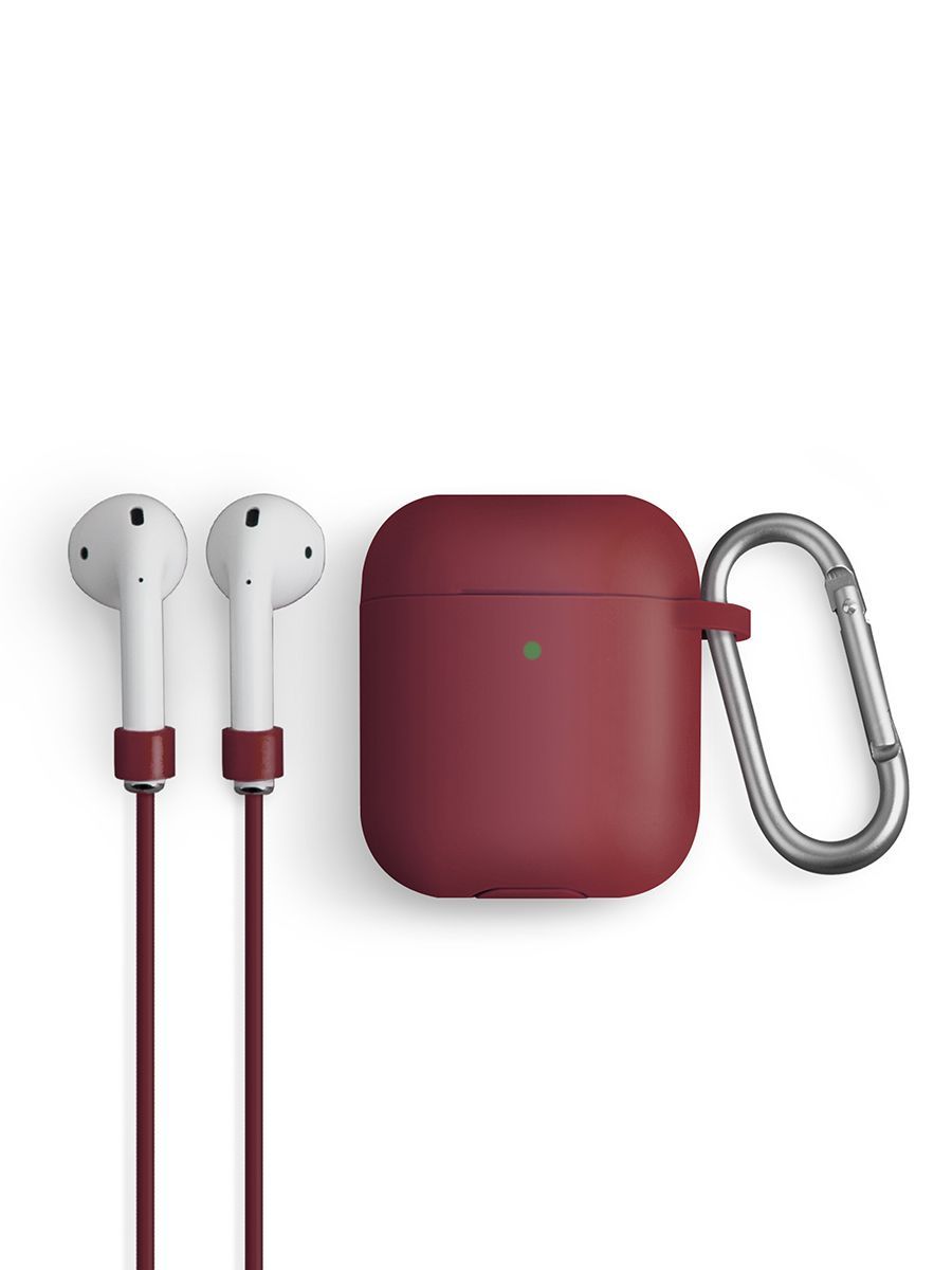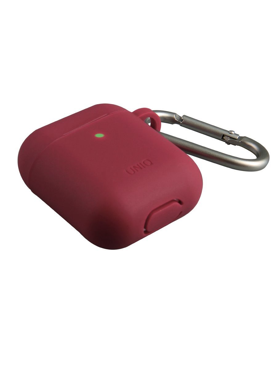 Чехол Uniq для беспроводных наушников Apple Airpods 1 2 / на Эпл Аирподс 1 2 силиконовый с карабином и шнурком-держателем Vencer, бордовый