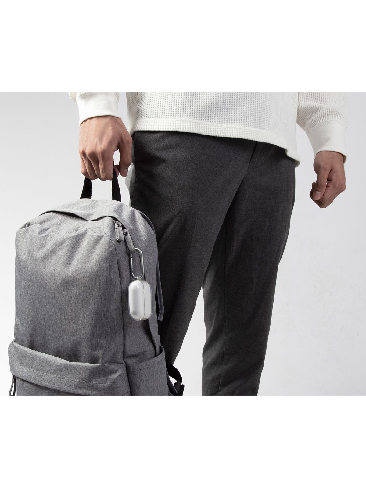 Модель оснащена алюминиевым карабином, с помощью которого можно прикрепить кейс к рюкзаку или на пояс.