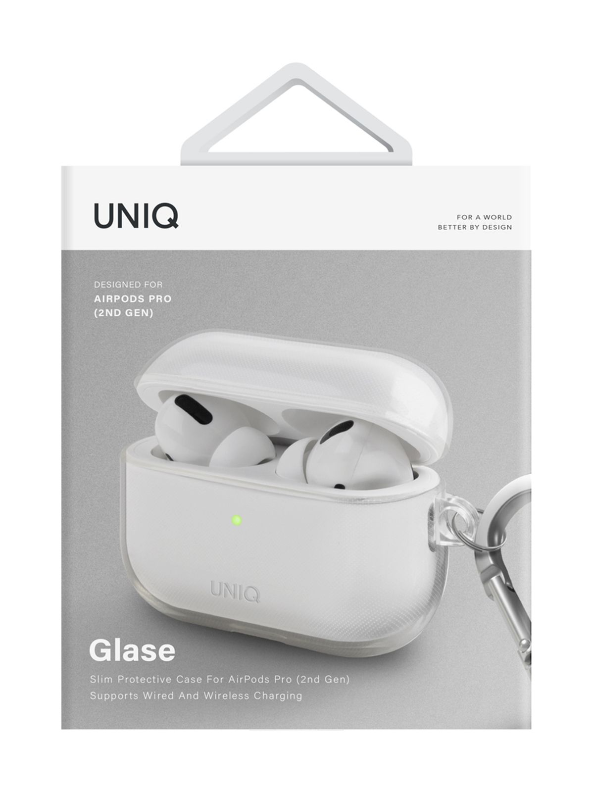 Чехол Uniq Glase для беспроводных наушников Apple Airpods Pro 2 / на Эпл Аирподс Про 2 тонкий силиконовый с карабином, прозрачный