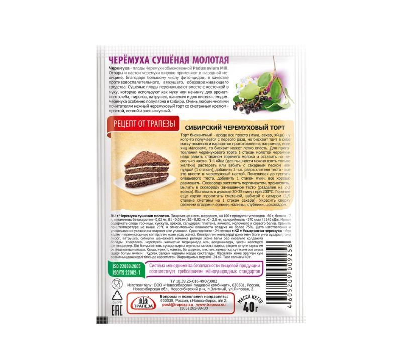 Черемуха Трапеза сушеная молотая, 2 уп по 40 г