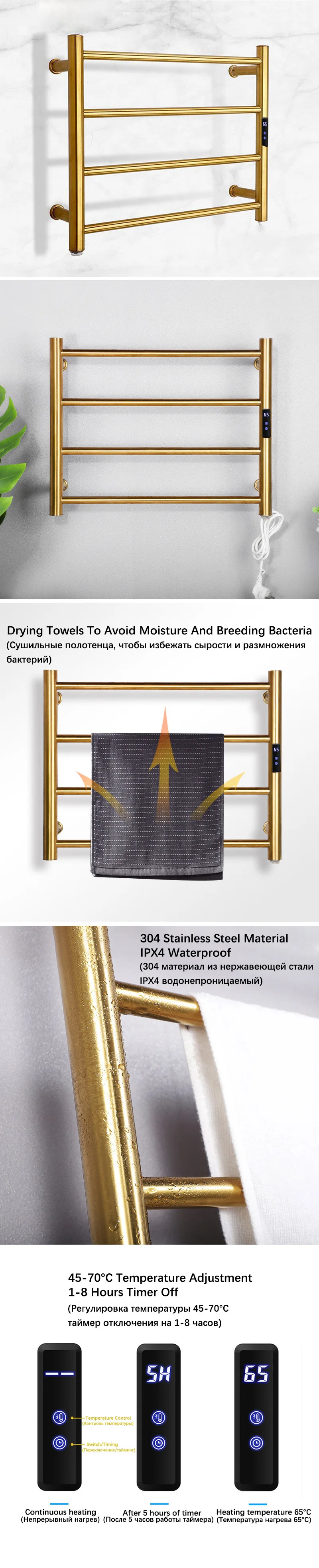 Черная/хромированная/Золотая электрическая вешалка для полотенец. Умный обогреватель полотенец. Вешалка для полотенец с потайной/открытой проволокой и подогревом. Вешалка для полотенец из нержавеющей стали