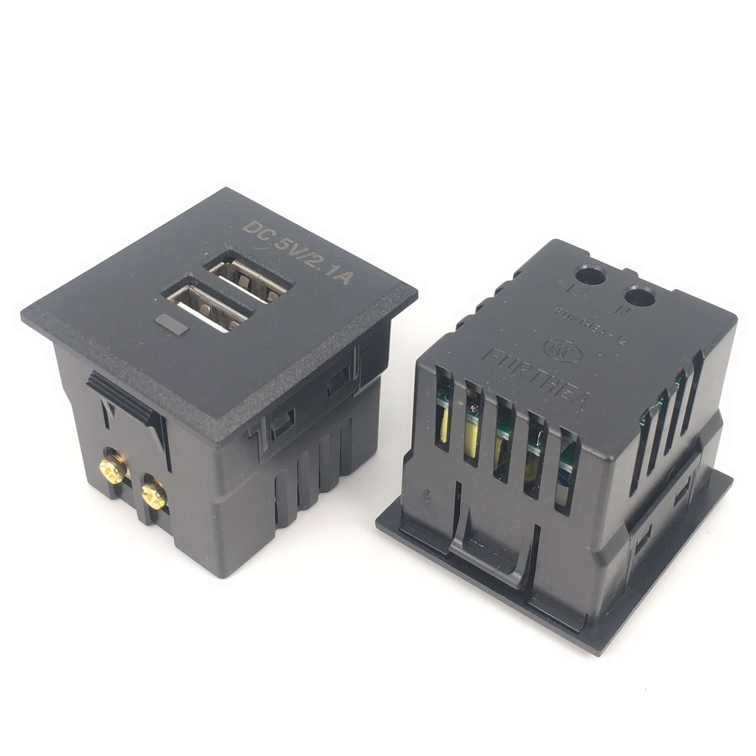 Черная настольная розетка 5 В, 2,1 А, двойная USB-розетка, встроенный модуль питания постоянного тока зарядное гнездо питания