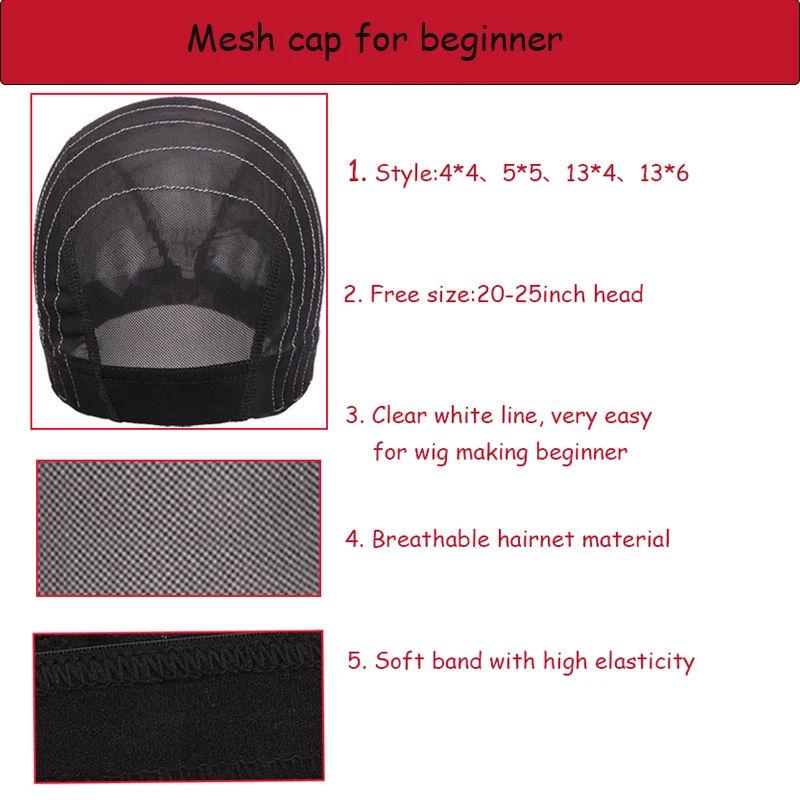 Черная сетчатая купольная шапочка для изготовления париков, 1 шт., шапочки для париков с картой руководства для начинающих, 5x5, кружевная застежка, плетеная шапочка с белой линией 13x4