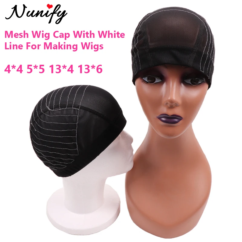 Черная сетчатая купольная крышка для парика, изготовление 1/3 шт. Шапки для парика с картой руководящих принципов для начинающих 5x5 Кружевная застежка, плетеная Кепка с белой линией 13x4