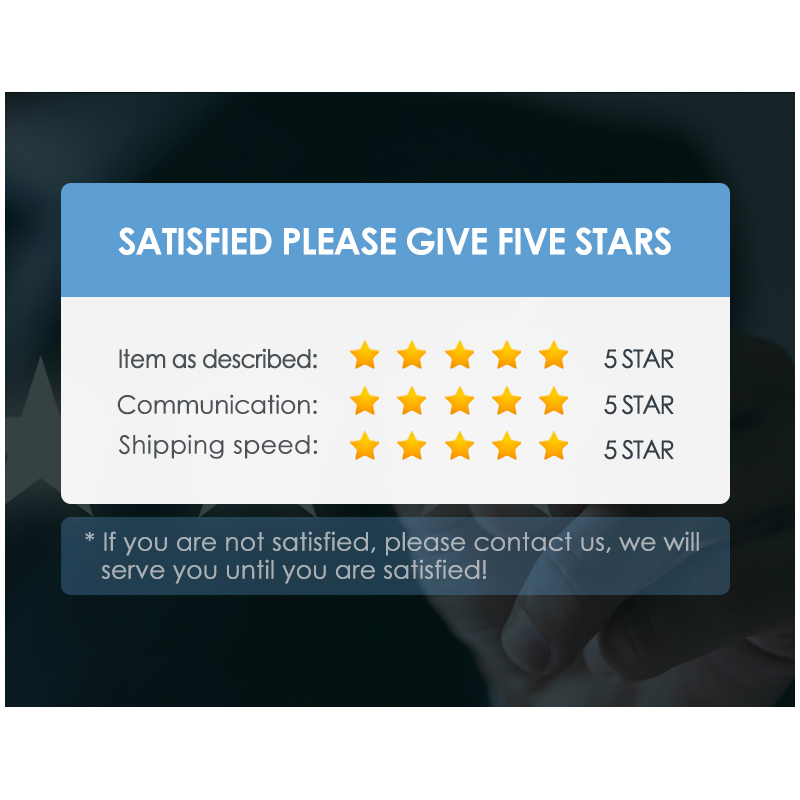 Если у вас есть какие-либо вопросы, пожалуйста, свяжитесь с нами, не оставляйте отрицательный отзыв, мы предоставим вам удовлетворительное решение, и с нетерпением ждем, когда вы зажжете для нас Пять маленьких звезд.
