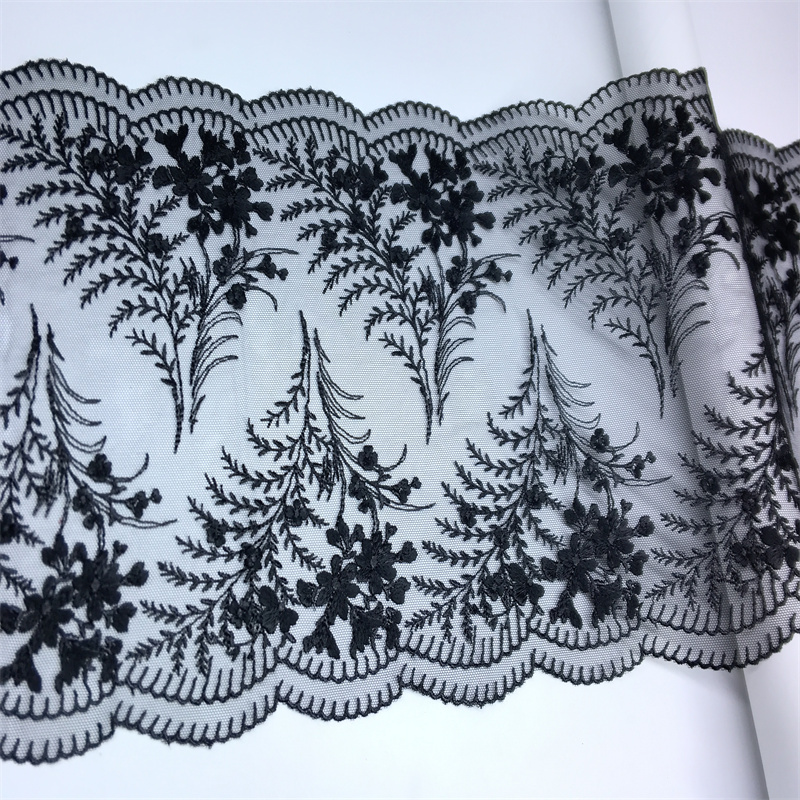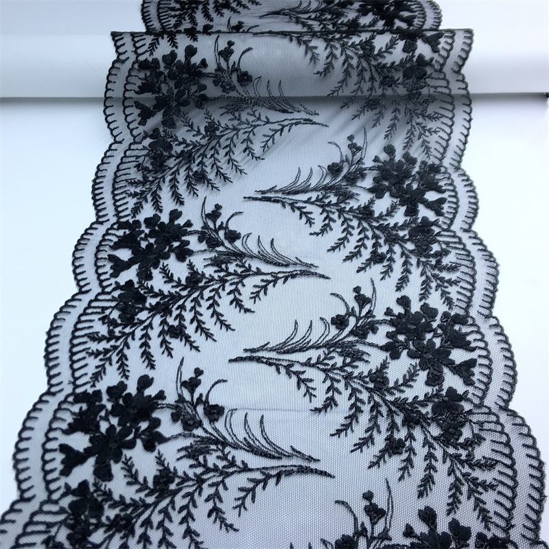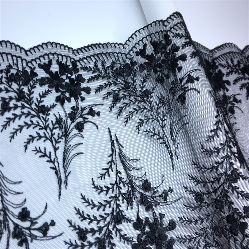 Color Black Tulle Embroidery Lace Trim