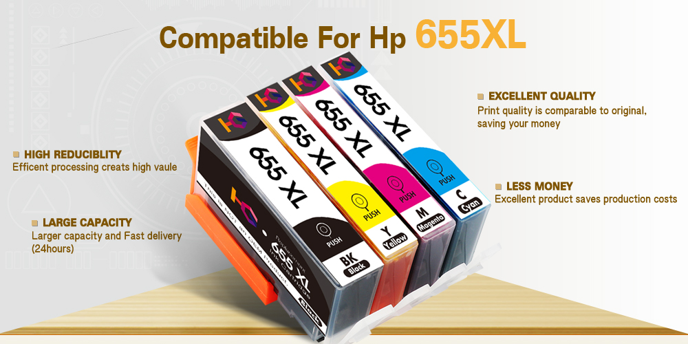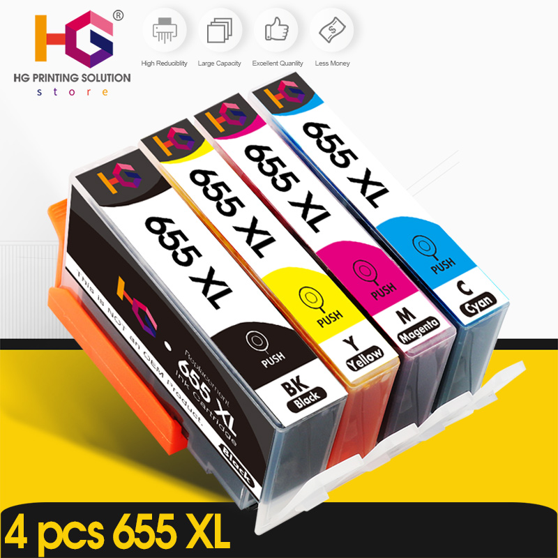 4 шт. совместимый с HP 655xl для hp 655 xl Черный чернильный картридж с чипом для принтера HP Deskjet 6520 6525 6625