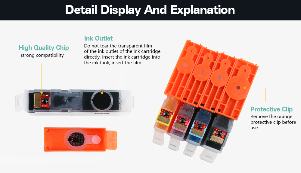 4) Новый с совместимым чипом, вам не нужно повторно использовать старый чип от оригинальных чернильных картриджей
