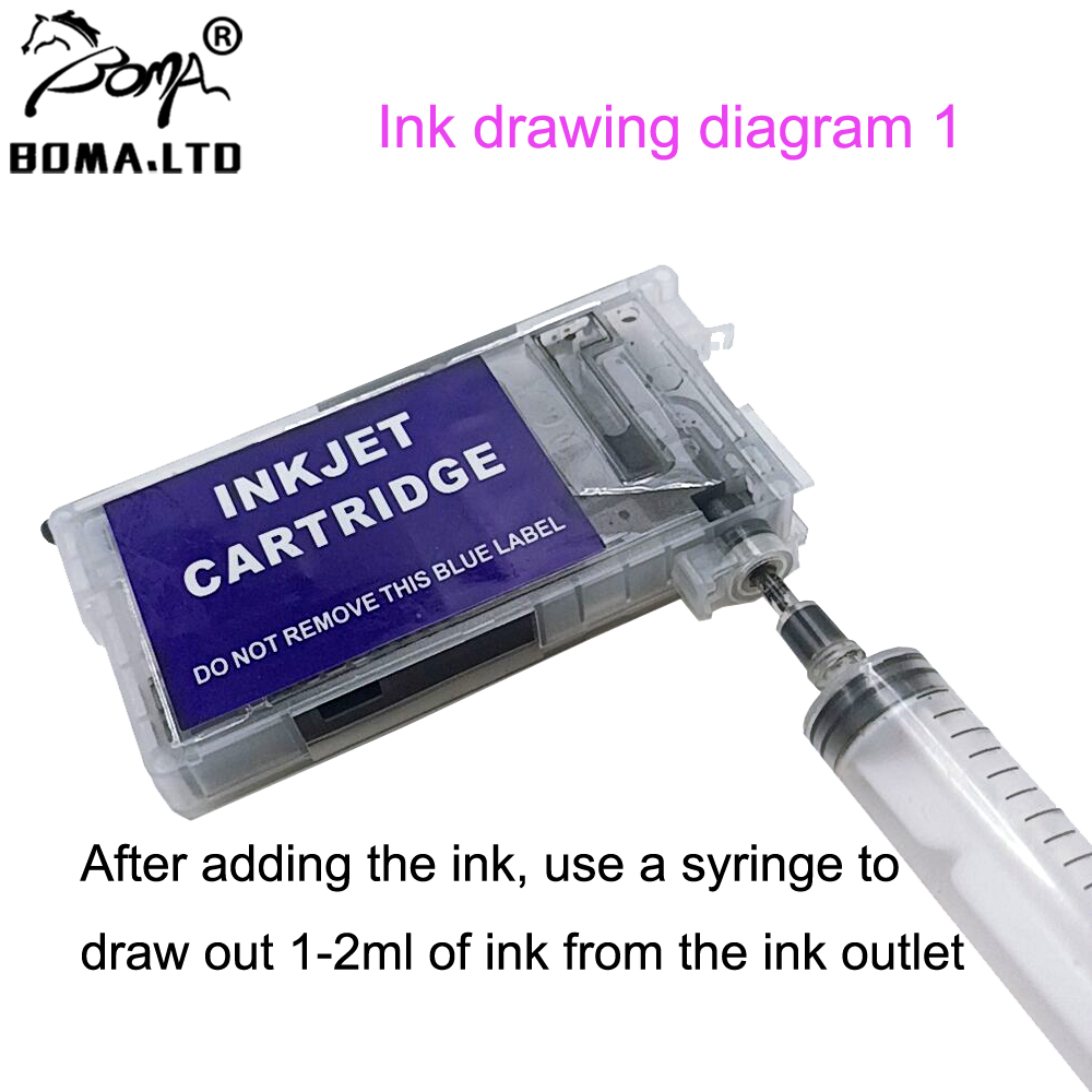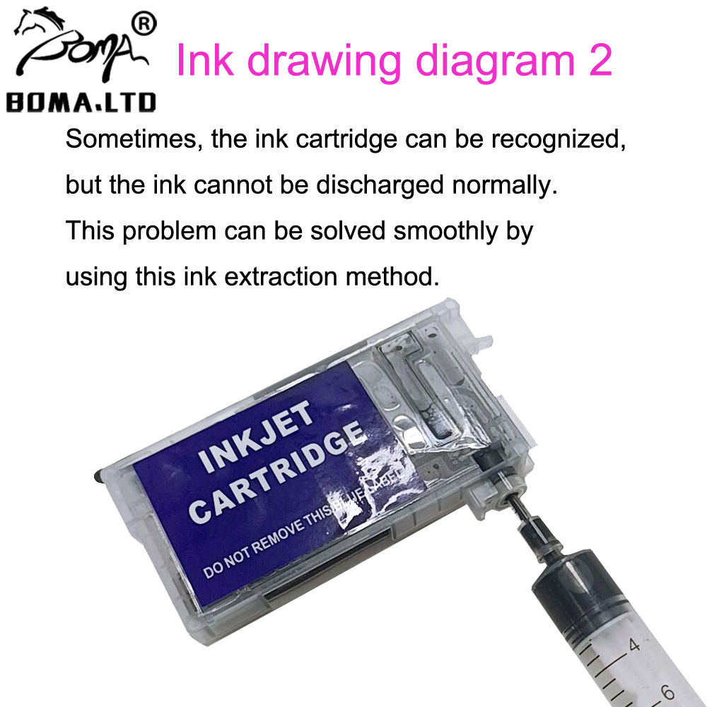 Шаг 4:Иногда чернила или картридж с воздухом внутри и печать линиями, вы должны удалить 5-10 мл из отверстия для выхода чернил шприцем.