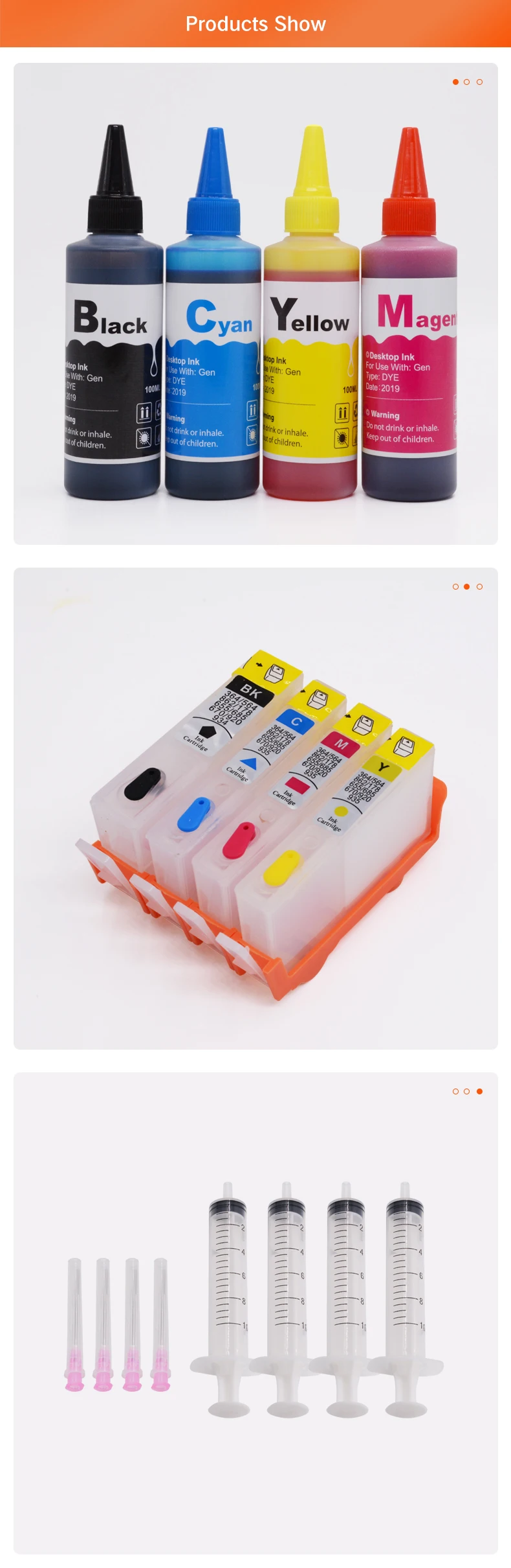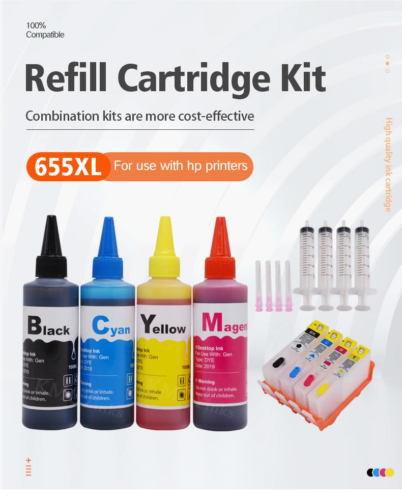 Для HP 655XL многоразовые картриджи + 4 бутылки чернил