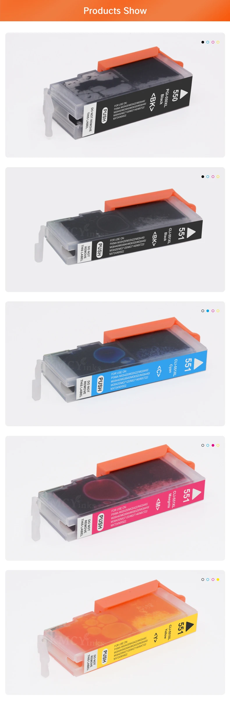5 шт. CLI--551 Фото чернильный картридж черного цвета, полный чернил