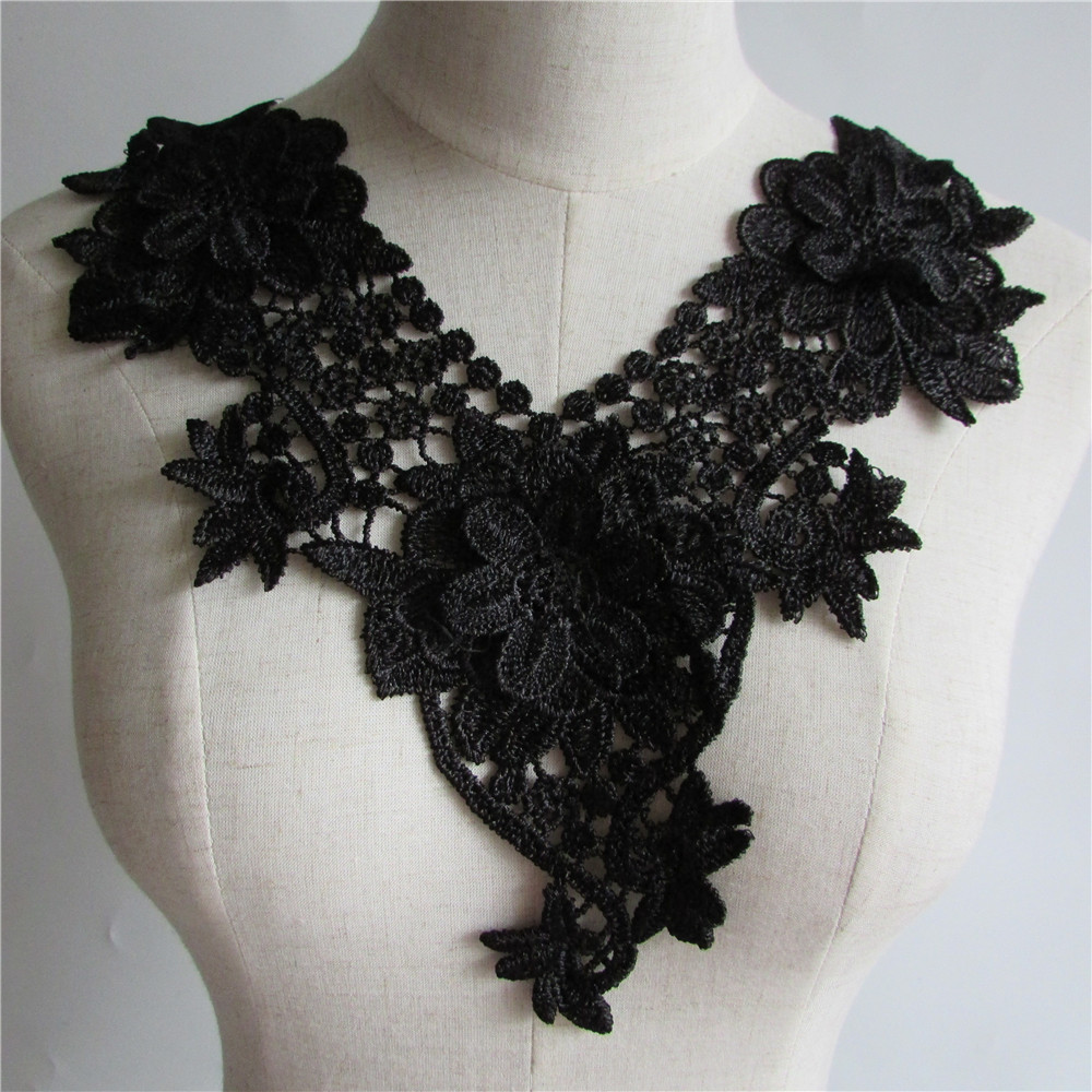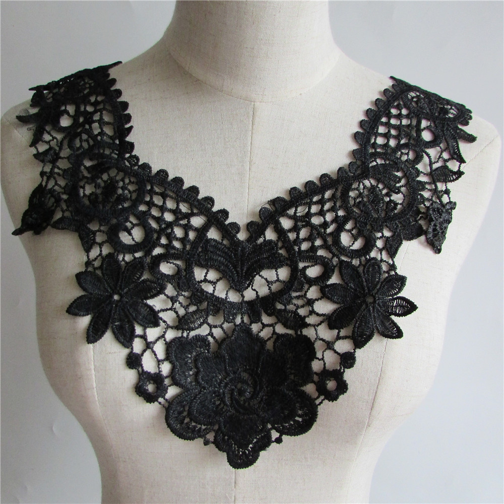 Черно-белая декоративная кружевная нагрудная аппликация для вышивки, искусственный воротник, сделай сам, одежда, принадлежности для рукоделия, аксессуары, 1 шт. для продажи