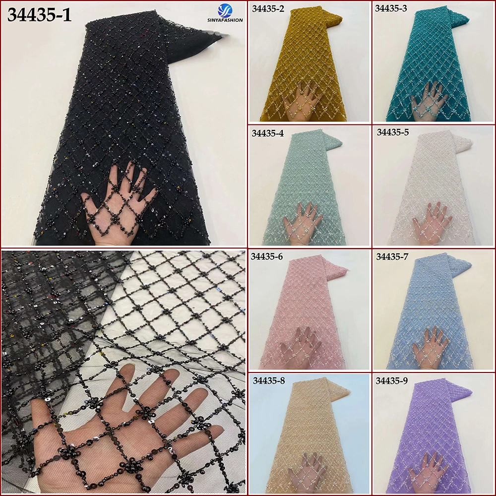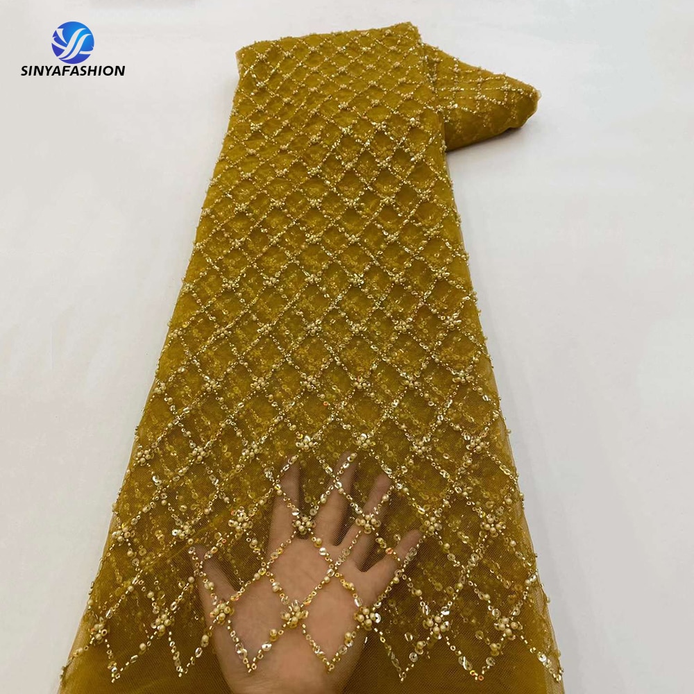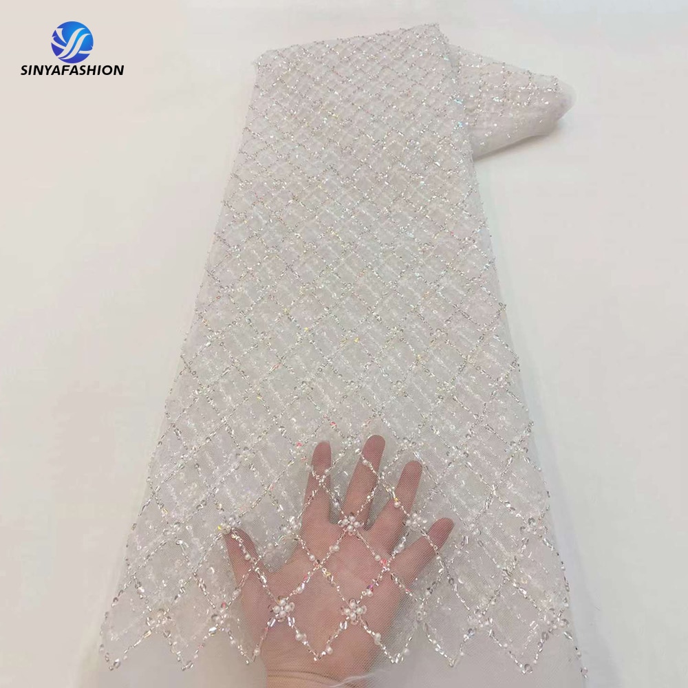 Sinya черный белый золотой нигерийский Тюль кружевные ткани с бусинами высокое качество роскошные африканские блестки французская Сетка кружево для свадьбы