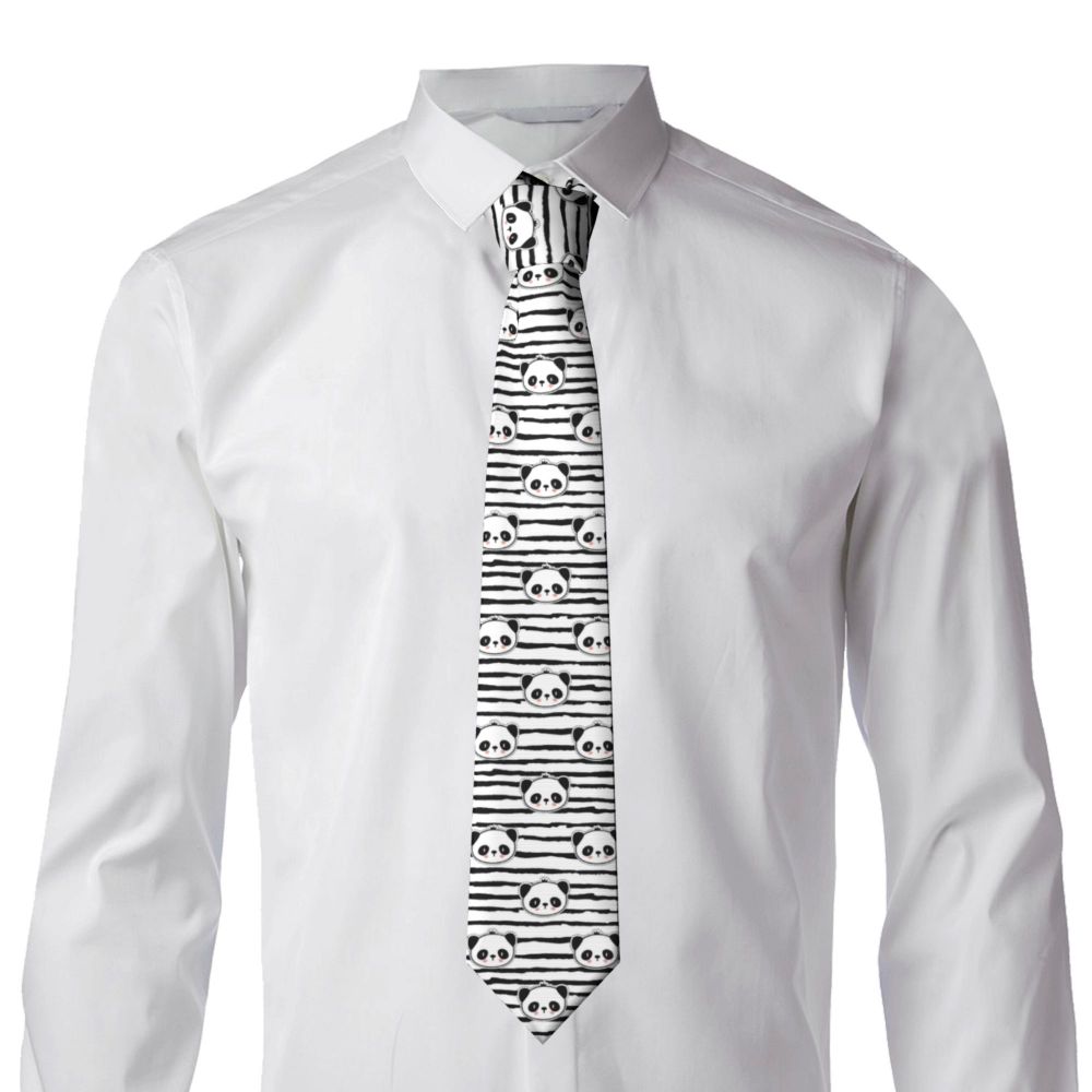 Черно-белый галстук с рисунком медведя панды для мужчин и женщин галстук аксессуары для одежды