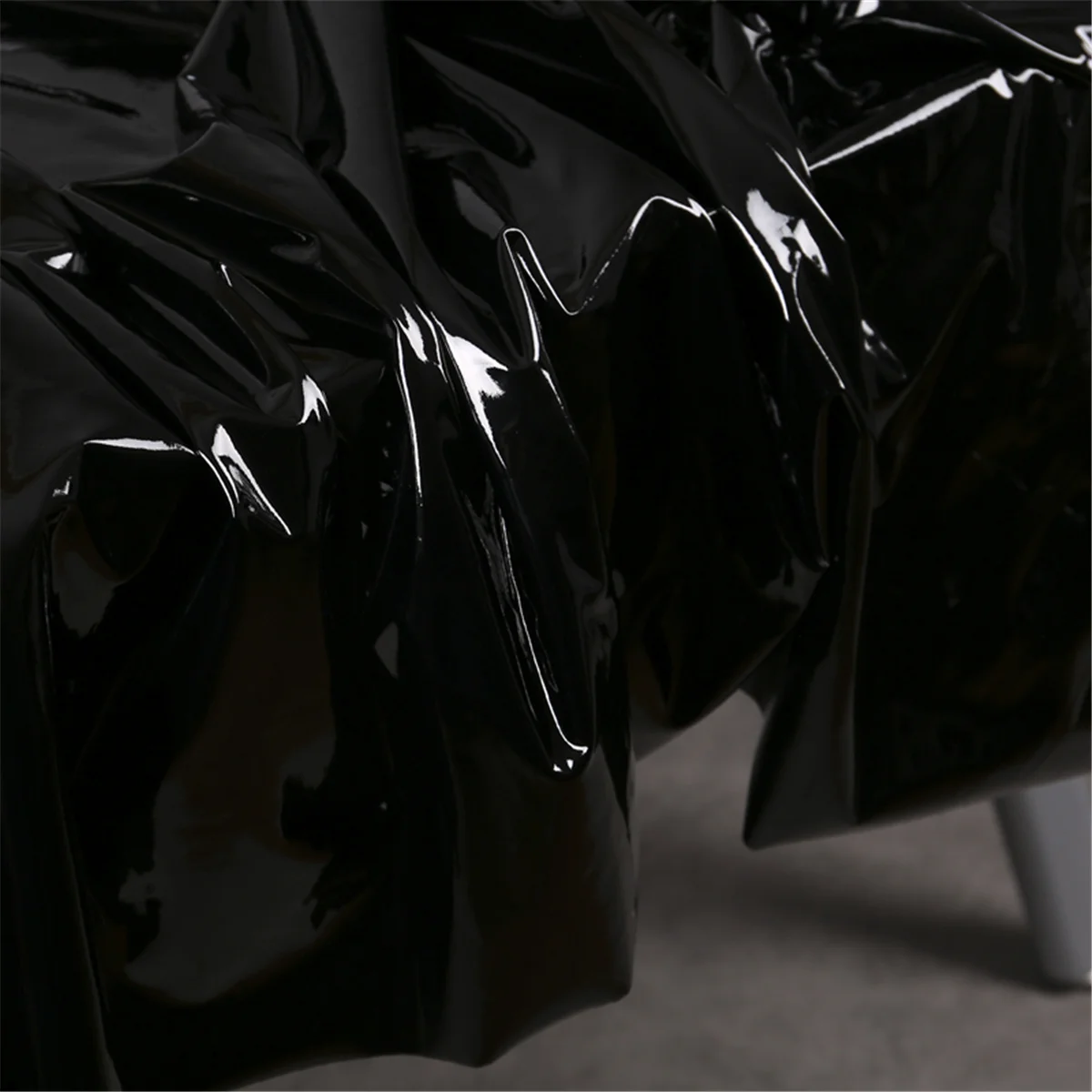 Черные эластичные тканевые костюмы из искусственной кожи, водонепроницаемые, против морщин, зеркальные, цветные, термополиуретановые пленки, сумки, Креативная одежда