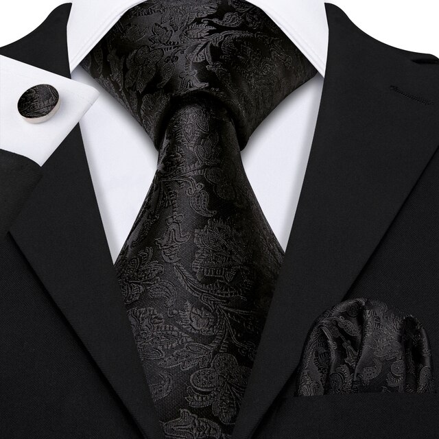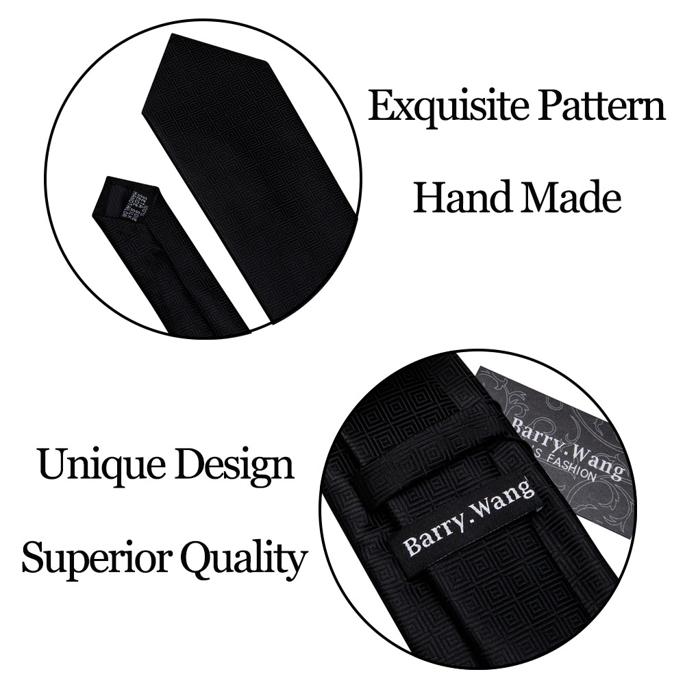 Черный геометрический галстук Шелковый галстук для мужчин Свадебный галстук Вечеринка Галстук Платок Галстук Barry.Wang Модный дизайнер Галстук Набор LS-5225