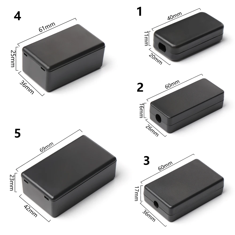 100% абсолютно новый и высококачественный материал: пластик Цвет: черный Размер: 40*20*11 мм/60*26*16 мм/60*36*17 мм/61*36*25 мм/69*42*23 мм (Д * Ш * В) В комплект входит: 1 пластиковый чехол для инструментов Особенности: 1. Прочный и практичный 2. Отлично подходит для электронных проектов, блоков питания, студенческих проектов, усилителей и т. д. Обратите внимание: 1,1 см = 10 мм = 0,39 дюймов. 2. Допускается погрешность в 1-2 мм из-за ручного измерения и убедитесь, что вы не возражаете перед заказом. 3. Пожалуйста, поймите, что цвета могут иметь хроматическую аберрацию, так как разное размещение фотографий.