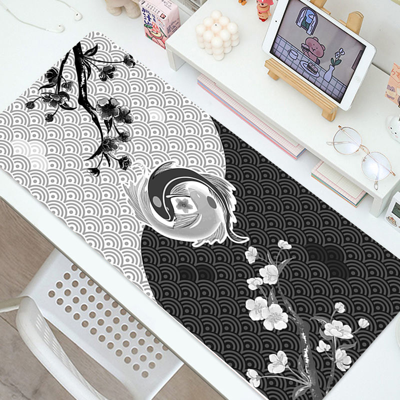 Black Mouse Pad Table Mat Pink Fish Mouse Pad  Computer Keyboard Cute Mousepad Overlock Office White Deskpad Gaming Desk Mats